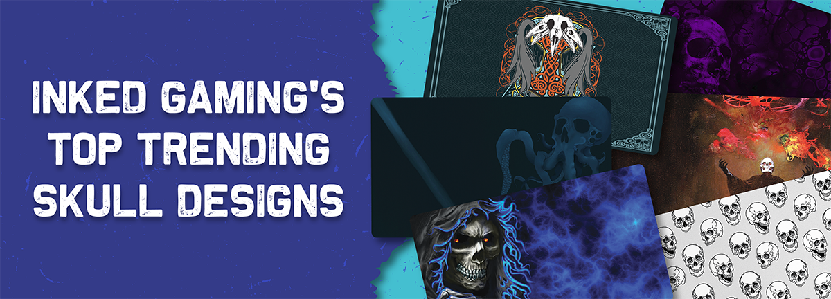 We collect skulls! Actually, that sounds a little creepy. Let’s try that again. We have a collection of cool skull designs that come from the talented artists in our community and our in-house team. These designs have made their way onto a variety of premium Inked Gaming gear, including playmats, mousepads, dice bags, and more.