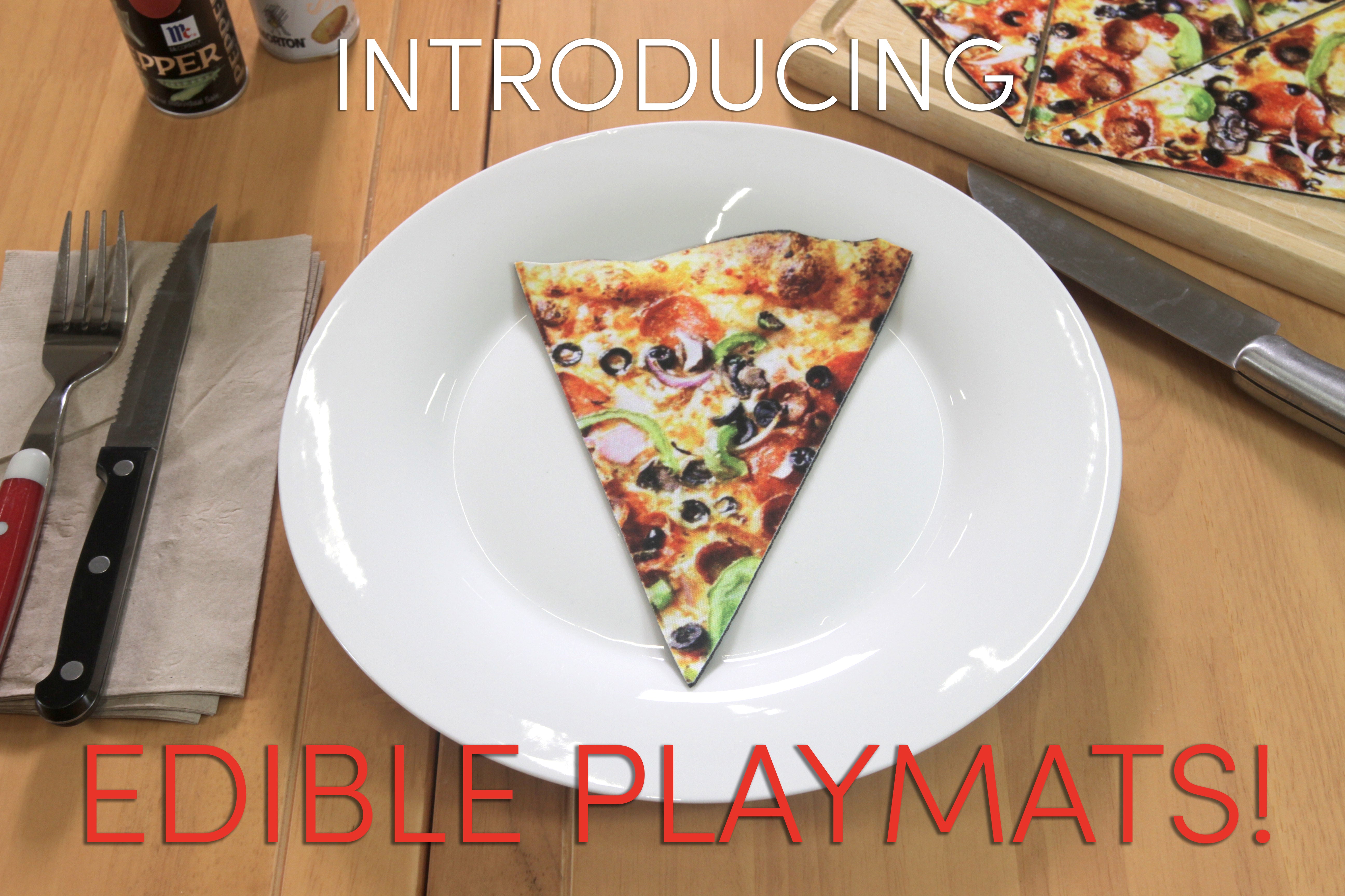 Ordering one of our brand-new edible playmats is no more difficult than ordering any of our other fine products. Currently, the edible option is only available for custom playmats, but may soon be adapted to our other products depending on the popularity of the edible upgrade! All you need to do is go to the custom playmat page, upload your art, and click the "edible" option in the upgrades list. BE SURE TO USE THE CODE NOMNOM10 FOR 10% OFF YOUR ORDER!!! Once you add the order to your cart, our Designs Team and our Skunkworks R&D Team will collaborate to design the best possible flavor-match to your mat, and ship it right to your door with the speed and quality you've come to expect from us.