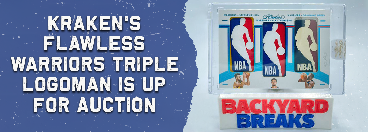 In case you didn’t know, a Warriors Triple Logoman was hit during a ‘flawless’ break back in June. Now, normally we would just put this story in a newsletter or another quick sports card listicle. But, this HUGE hit really ‘hits’ home for us, since it was our very own Thomas Pool (aka Kraken) who scored the card from Backyard Breaks!