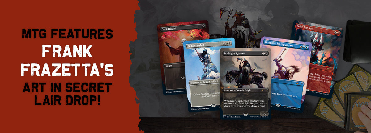We caught this update and just had to make sure that all of our followers knew about it! After all, our collection is packed with stunning designs from the late Godfather of Fantasy art, and we’re thrilled to see one of our favorite artists featured in one of our favorite games. It’s no secret that Frank Frazetta’s work is printed on a variety of our premium products, including playmats, dice bags, mousepads, and more. Now, you can add MTG cards to that list as well!
