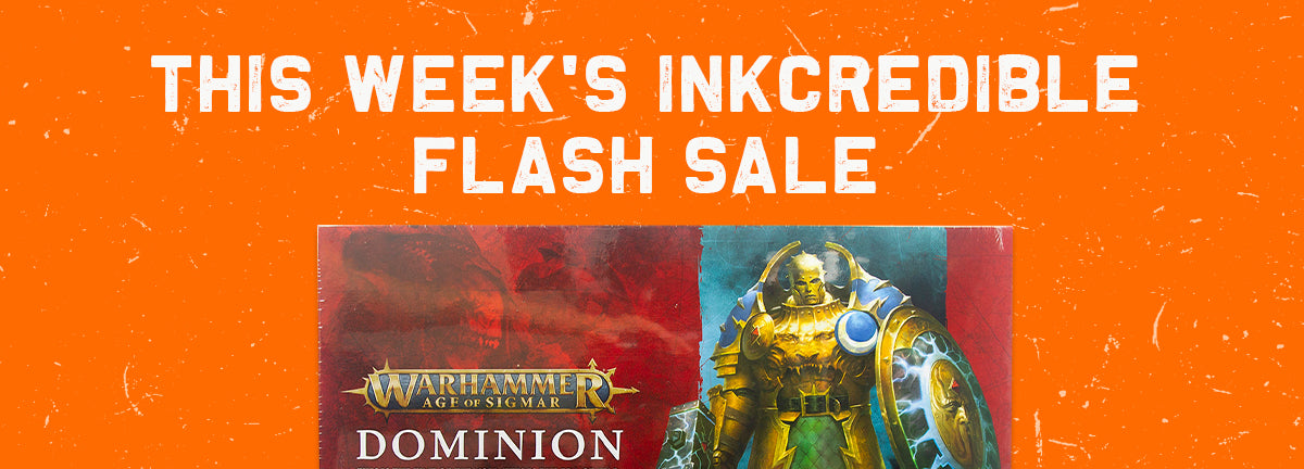 This week’s Inkcredible Flash Sale is for the wargamers! The battle-hungry barbarians with a fighting spirit who are looking to build up their army and charge into battle with something new. It’s the Warhammer - Age of Sigmar: Dominion set, which includes the full Warhammer Age of Sigmar Core Book for the latest edition, coupled with an exclusive cover that’s only available in this set.