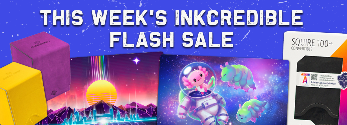 So, for the rest of the day, anyone who adds a Standard Playmat and Gamegenic’s Squire 100+ Convertible Deck Box to their cart will get 20% OFF the playmat just by using the code: INKCREDIBLE at checkout.