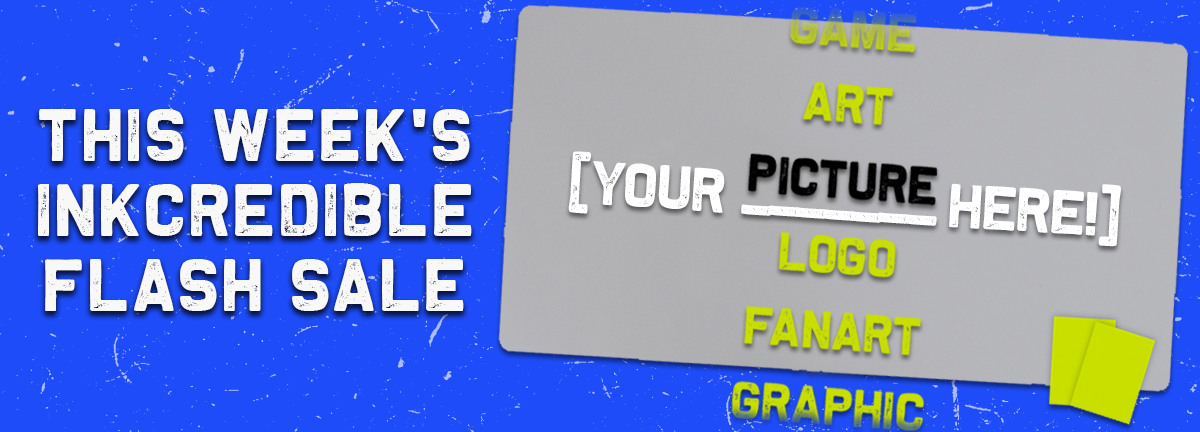 Just like our custom playmats, creativity comes in all different shapes & sizes, and for this week’s Inkredible Flash Sale, we’re giving our gamers the opportunity to go bigger…for a better a price! All through today, we’re offering a special discount on our Custom Oversize Playmat.