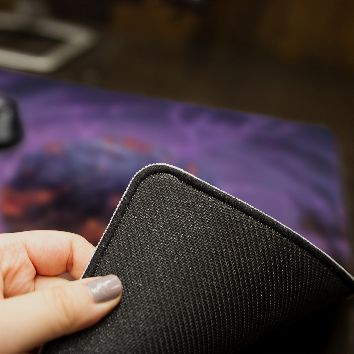 Need a new mousepad that features quality craftsmanship and creativity? Then you’ve definitely come to the right place. Our mousepads are made in-house with premium materials and unique artwork that give your battlestation the supreme look and feel that it deserves. The top is made from sleek polyester, which enables faster, more precise mouse movements. This enhanced speed and precision come in handy whether you’re working or gaming. On the bottom, there’s a strong anti-slip rubber backing that holds a nice, tight grip on your desk while you’re doing your thing. The action and traction this pad provides give you a better overall experience in completing daily tasks, deadlines, and missions of all kinds. And because we’ve added more sizing options to it, you no longer have to worry about running out of room at the worst moments either. The sizes are Classic, Large, and XL. The Classic mousepad has unstitched edges. However, the Large mousepad does include stitched edging, while the XL mousepad has both a stitched or unstitched edging option available. You can see the approximate measurements of all those sizes in the details below. We think you’ll be impressed…if you aren’t already!