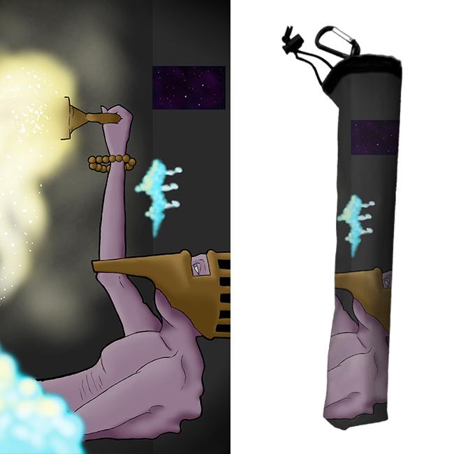 Playmat Bags are specifically designed to hold your mats in style. They are large enough to carry up to two mats. They are coated to be water resistant and include a strap with carabiner for carrying on your backpack. Our bags are hand made in house, and to order. A design that is vertical or patterned would be best for this type of product.