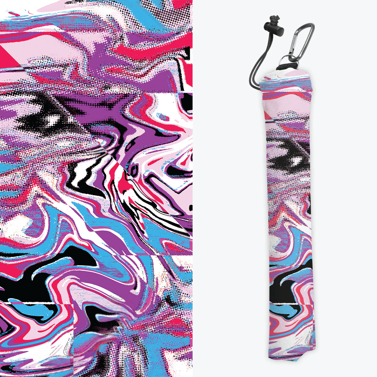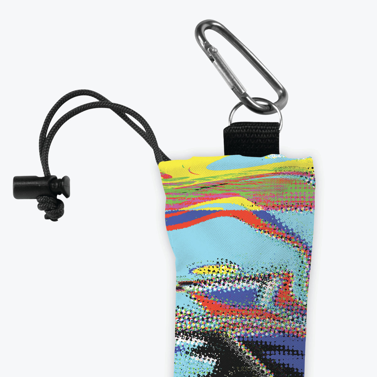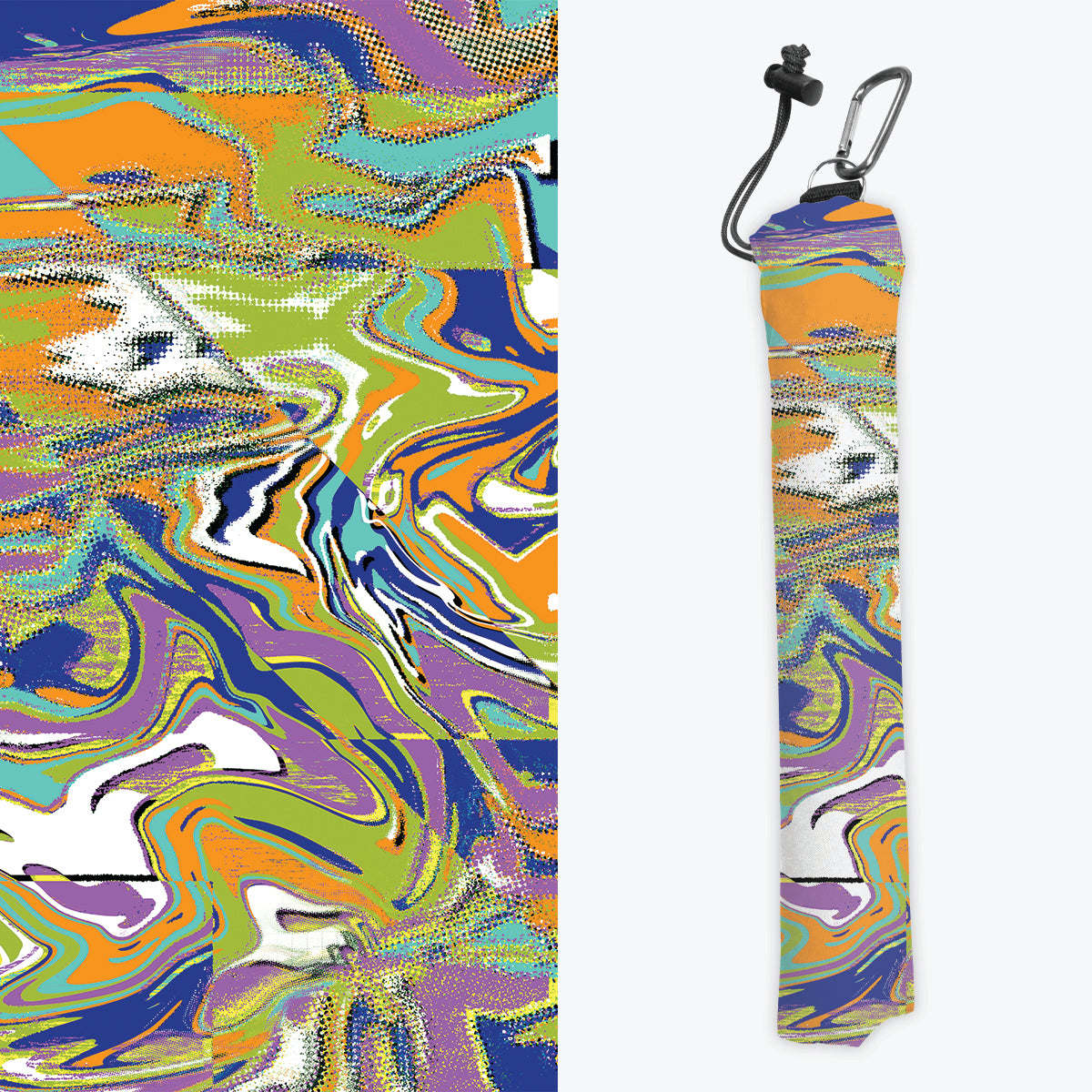 Playmat Bags are specifically designed to hold your mats in style. They are large enough to carry up to two mats. They are coated to be water resistant and include a strap with carabiner for carrying on your backpack. Our bags are hand made in house, and to order. A design that is vertical or patterned would be best for this type of product.