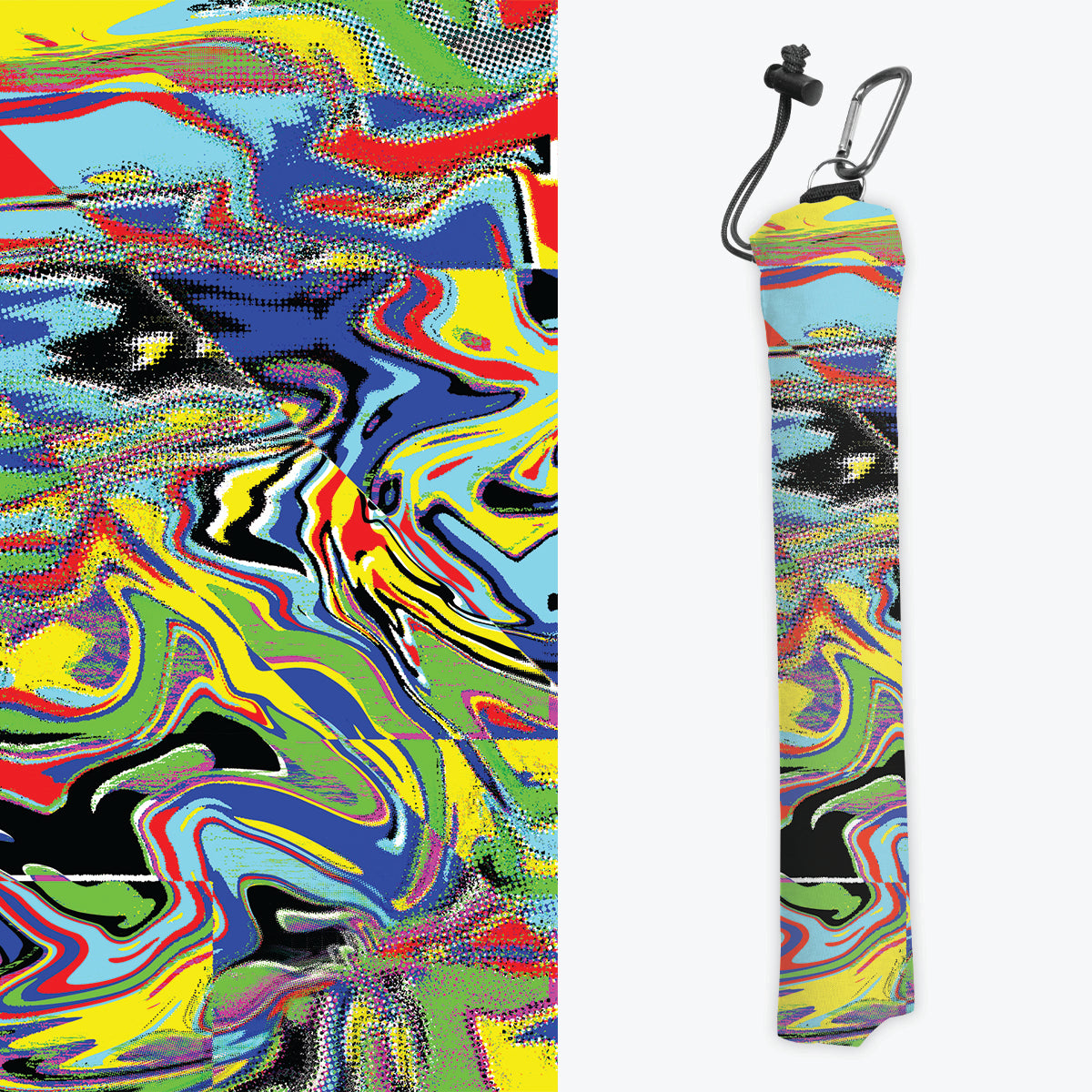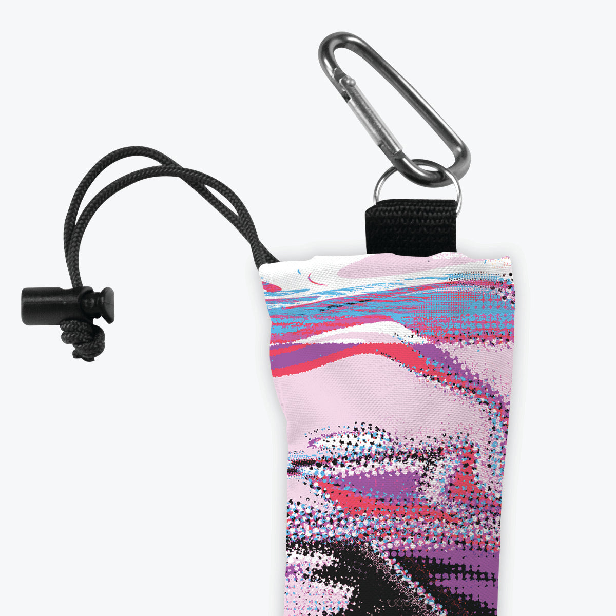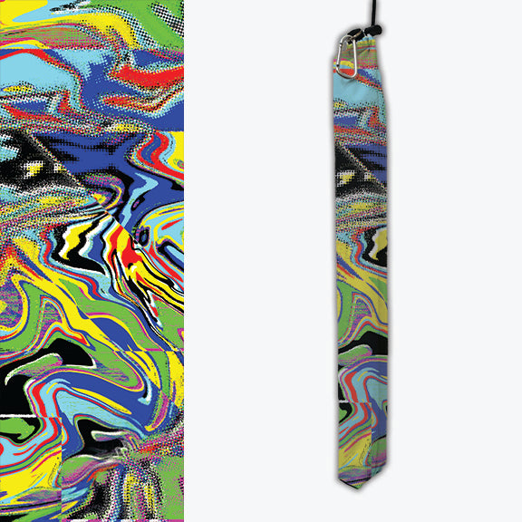 Playmat Bags are specifically designed to hold your mats in style. They are large enough to carry up to two mats. They are coated to be water resistant and include a strap with carabiner for carrying on your backpack. Our bags are hand made in house, and to order. A design that is vertical or patterned would be best for this type of product.
