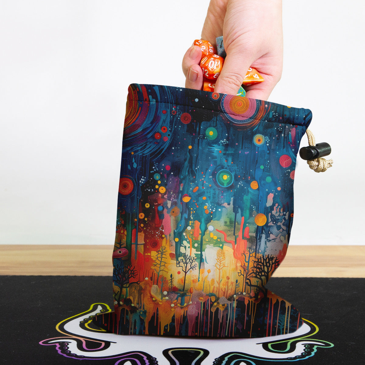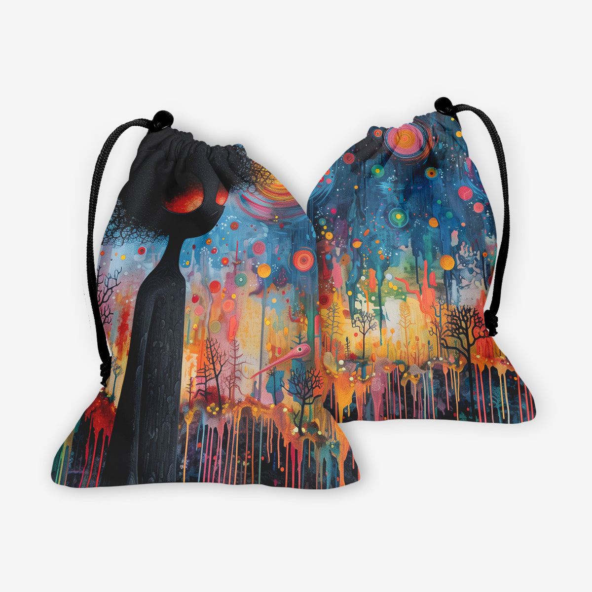 Scenes Of JoyAlways gaming on the go? Carry everything you need and more using our specially crafted dice bag. But this bag is designed to hold more than just dice. We make it so you can carry other essential accessories and gear with your dice, including deck boxes, life counters, extra sleeves, and pens. Quality is just as important as quantity, which is why our dice bags are crafted using premium material as well. Featuring a soft inner lining and microfiber on the inside and vibrant pre-designed artwork on the outside, our dice bag has an amazing look and feel to it!