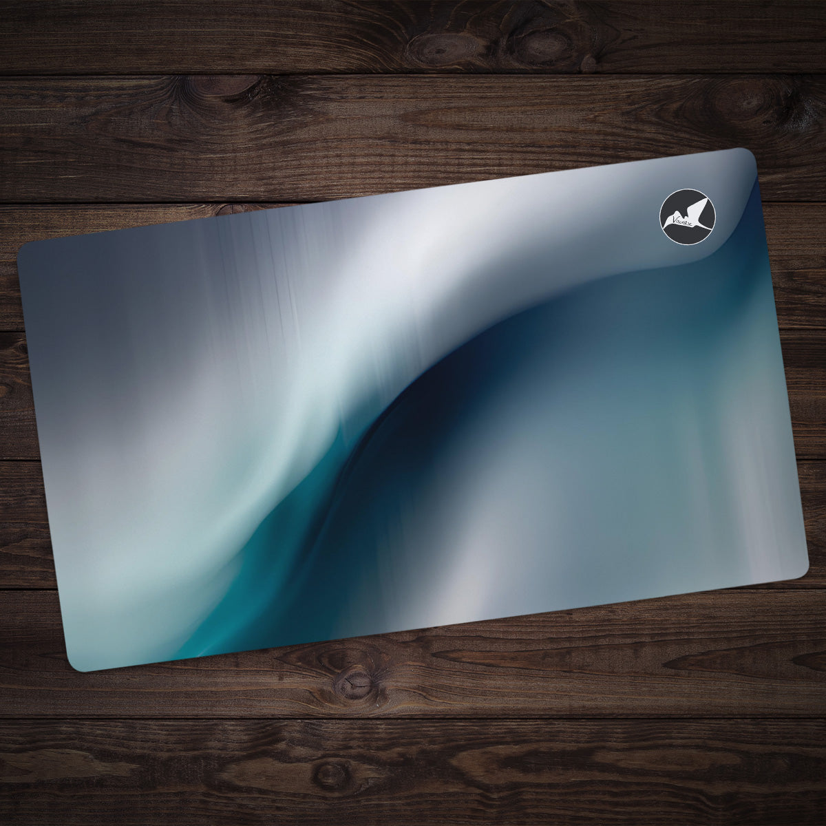Standard Playmat measures at 24” x 14” inches and is 1/16 of an inch thick. It’s made with a smooth cloth top and strong rubber backing.