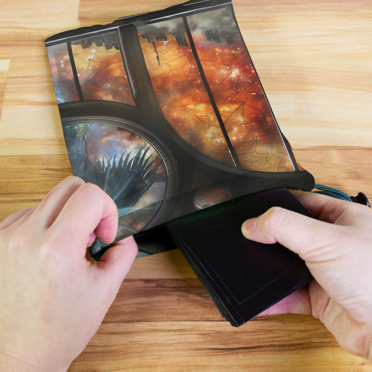 Always gaming on the go? Carry everything you need and more using our specially crafted dice bag. But this bag is designed to hold more than just dice. We make it so you can carry other essential accessories and gear with your dice, including deck boxes, life counters, extra sleeves, and pens. Quality is just as important as quantity, which is why our dice bags are crafted using premium material as well. Featuring a soft inner lining and microfiber on the inside and vibrant pre-designed artwork on the outside, our dice bag has an amazing look and feel to it!