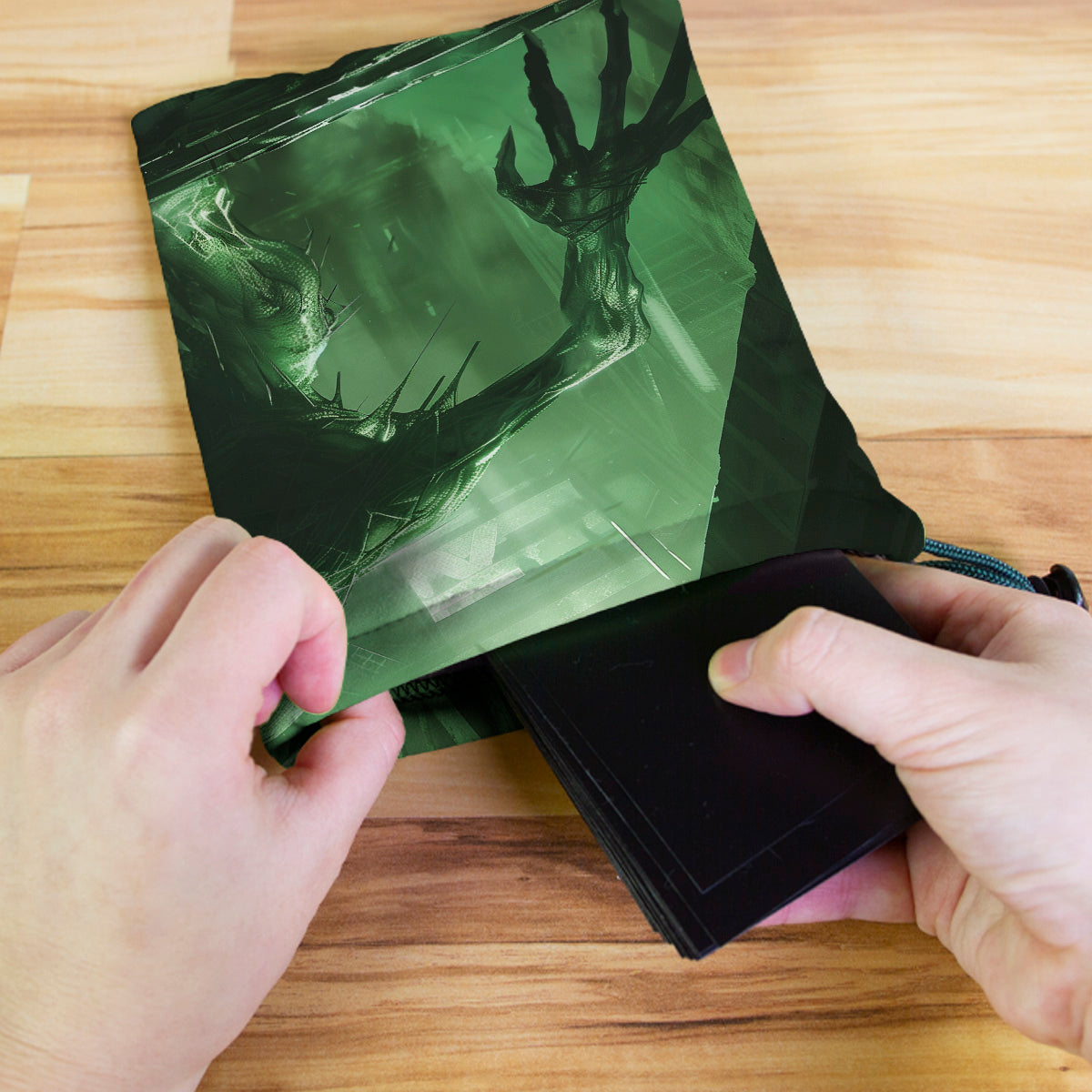 Always gaming on the go? Carry everything you need and more using our specially crafted dice bag. But this bag is designed to hold more than just dice. We make it so you can carry other essential accessories and gear with your dice, including deck boxes, life counters, extra sleeves, and pens. Quality is just as important as quantity, which is why our dice bags are crafted using premium material as well. Featuring a soft inner lining and microfiber on the inside and vibrant pre-designed artwork on the outside, our dice bag has an amazing look and feel to it!