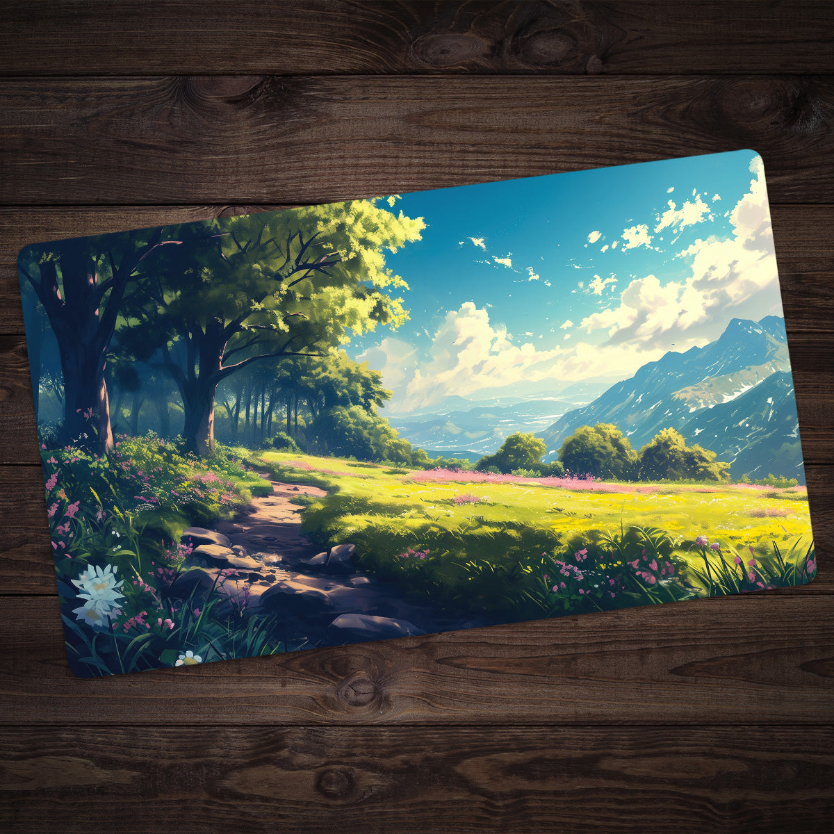 Standard Playmat measures at 24” x 14” inches and is 1/16 of an inch thick. It’s made with a smooth cloth top and strong rubber backing.