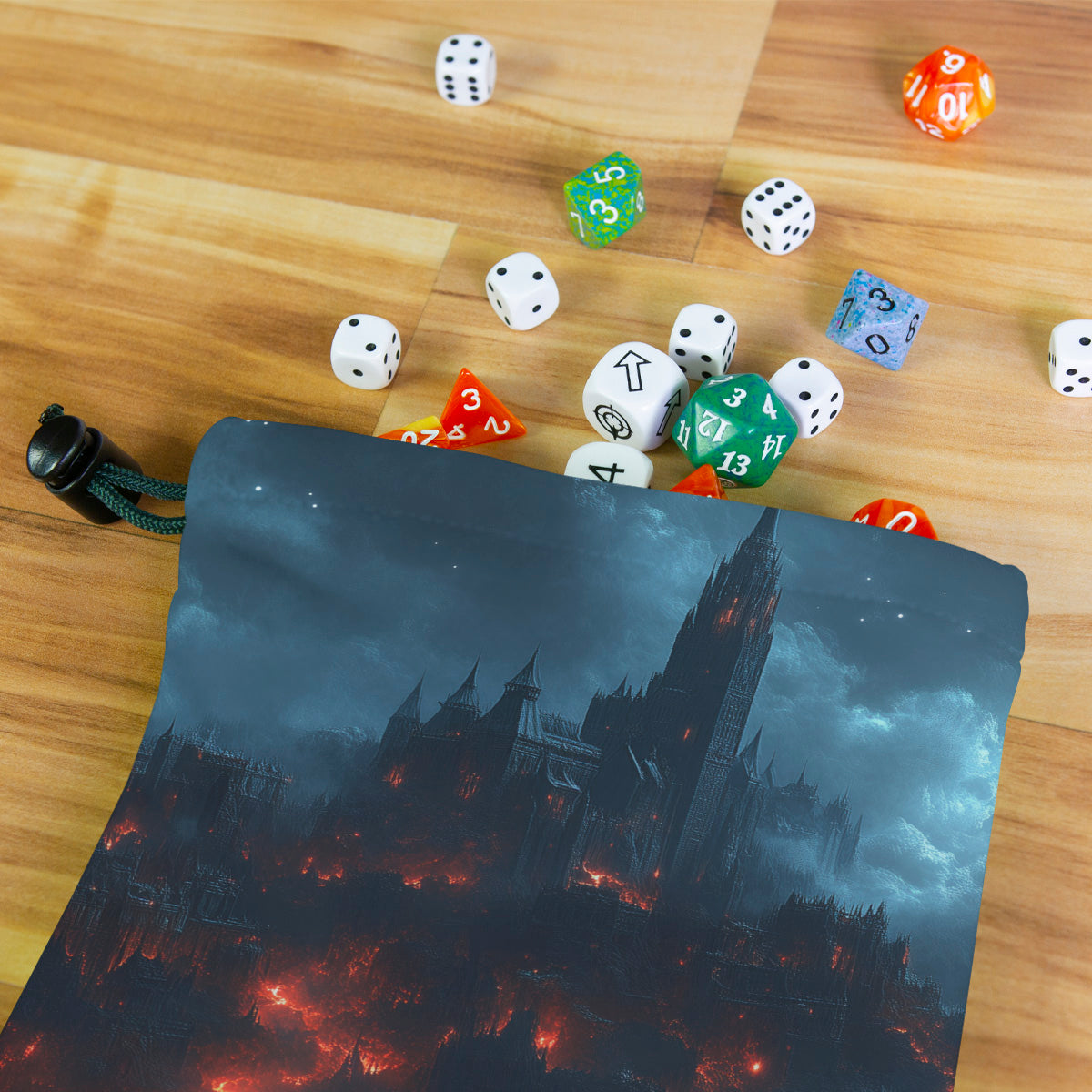 CVLPRITAlways gaming on the go? Carry everything you need and more using our specially crafted dice bag. But this bag is designed to hold more than just dice. We make it so you can carry other essential accessories and gear with your dice, including deck boxes, life counters, extra sleeves, and pens. Quality is just as important as quantity, which is why our dice bags are crafted using premium material as well. Featuring a soft inner lining and microfiber on the inside and vibrant pre-designed artwork on the outside, our dice bag has an amazing look and feel to it!