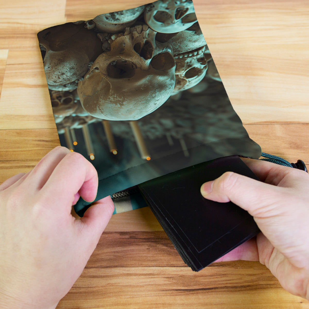 Always gaming on the go? Carry everything you need and more using our specially crafted dice bag. But this bag is designed to hold more than just dice. We make it so you can carry other essential accessories and gear with your dice, including deck boxes, life counters, extra sleeves, and pens. Quality is just as important as quantity, which is why our dice bags are crafted using premium material as well. Featuring a soft inner lining and microfiber on the inside and vibrant pre-designed artwork on the outside, our dice bag has an amazing look and feel to it!