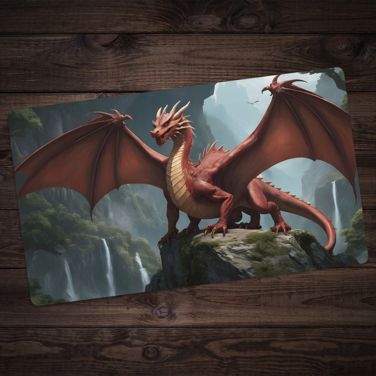 Standard Playmat measures at 24” x 14” inches and is 1/16 of an inch thick. It’s made with a smooth cloth top and strong rubber backing.