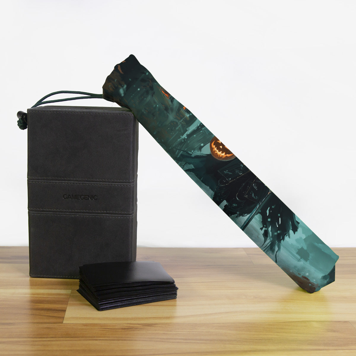 Keep your playmat in pristine condition wherever you go with one of our handcrafted playmat bags. This playmat bag is specifically designed to protect your playmat and can hold two standard sized mats at the same time (in case you need a backup or your friend forgets theirs). Each bag is made in-house and features a water-resistant coating along with a drawstring and carabiner clip for secure carrying. So you can take your game anywhere and in any weather.