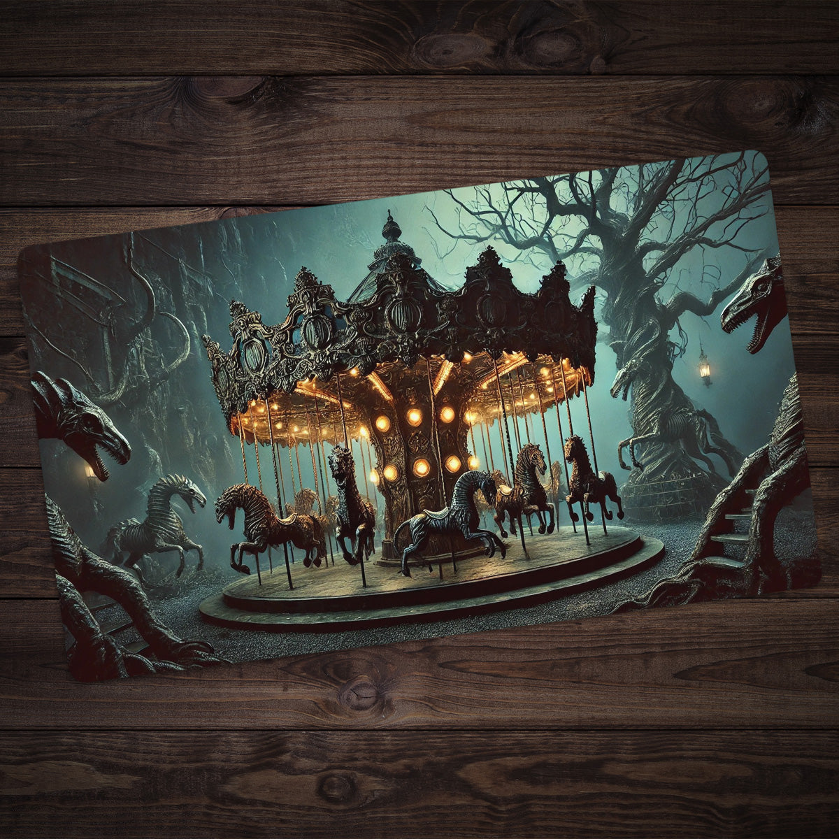 Standard Playmat measures at 24” x 14” inches and is 1/16 of an inch thick. It’s made with a smooth cloth top and strong rubber backing.
