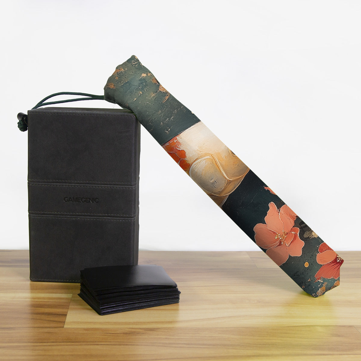 Keep your playmat in pristine condition wherever you go with one of our handcrafted playmat bags. This playmat bag is specifically designed to protect your playmat and can hold two standard sized mats at the same time (in case you need a backup or your friend forgets theirs). Each bag is made in-house and features a water-resistant coating along with a drawstring and carabiner clip for secure carrying. So you can take your game anywhere and in any weather.