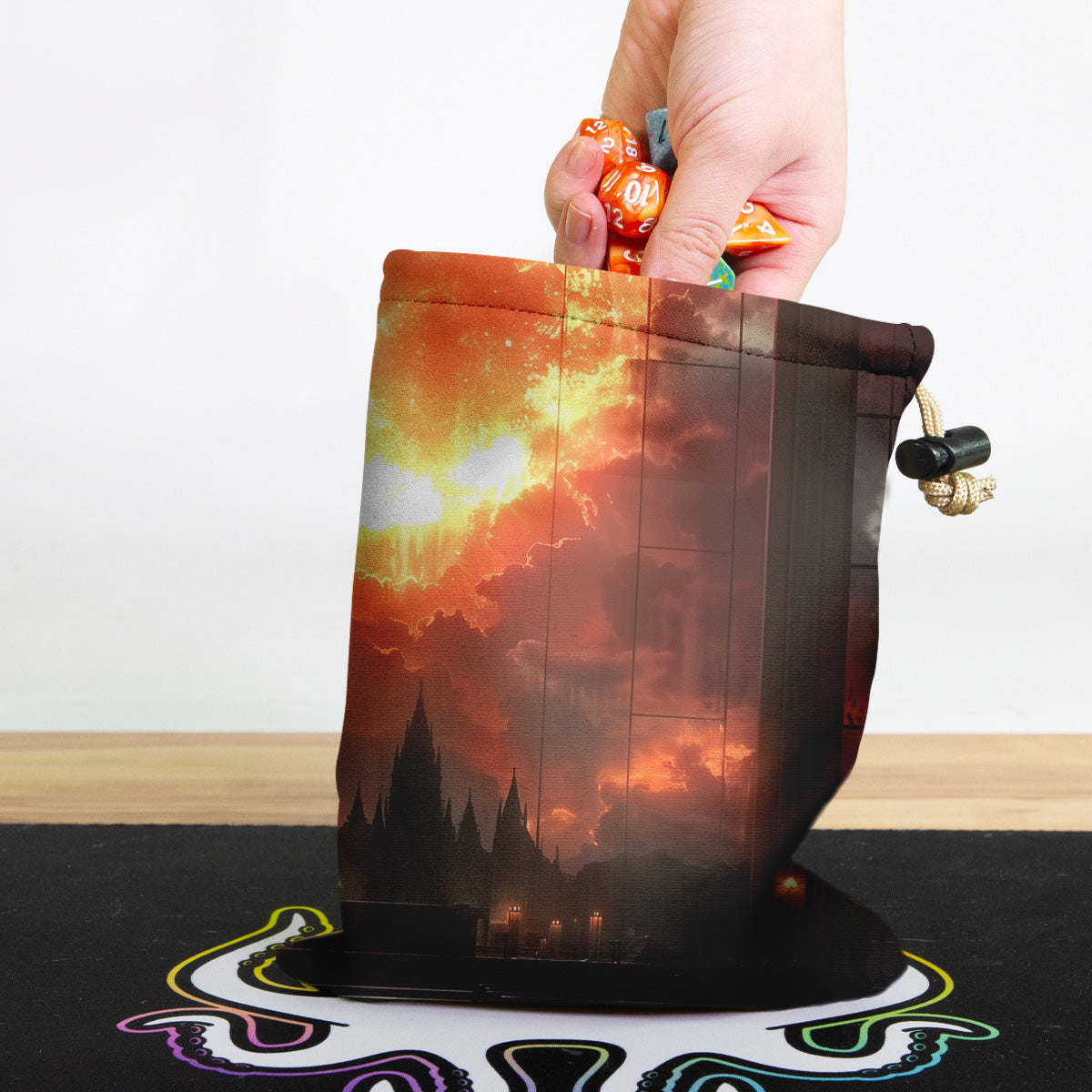 Always gaming on the go? Carry everything you need and more using our specially crafted dice bag. But this bag is designed to hold more than just dice. We make it so you can carry other essential accessories and gear with your dice, including deck boxes, life counters, extra sleeves, and pens. Quality is just as important as quantity, which is why our dice bags are crafted using premium material as well. Featuring a soft inner lining and microfiber on the inside and vibrant pre-designed artwork on the outside, our dice bag has an amazing look and feel to it!