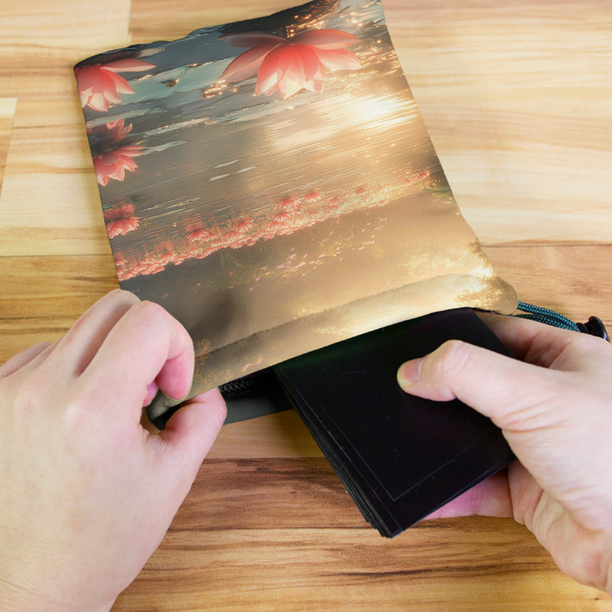 Always gaming on the go? Carry everything you need and more using our specially crafted dice bag. But this bag is designed to hold more than just dice. We make it so you can carry other essential accessories and gear with your dice, including deck boxes, life counters, extra sleeves, and pens. Quality is just as important as quantity, which is why our dice bags are crafted using premium material as well. Featuring a soft inner lining and microfiber on the inside and vibrant pre-designed artwork on the outside, our dice bag has an amazing look and feel to it!