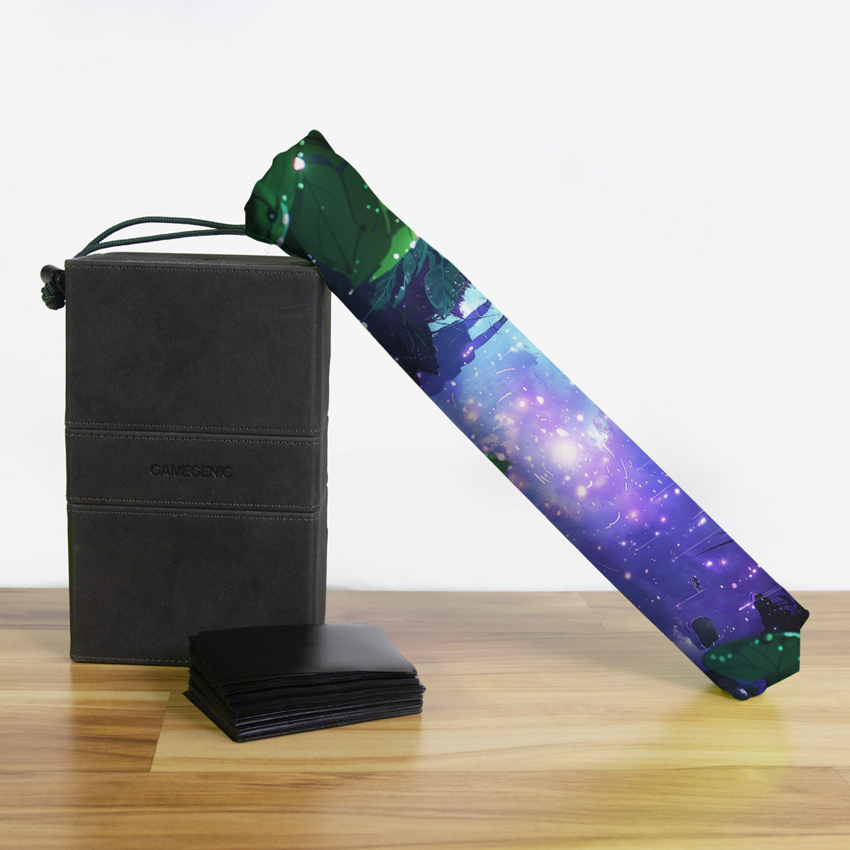 Keep your playmat in pristine condition wherever you go with one of our handcrafted playmat bags. This playmat bag is specifically designed to protect your playmat and can hold two standard sized mats at the same time (in case you need a backup or your friend forgets theirs). Each bag is made in-house and features a water-resistant coating along with a drawstring and carabiner clip for secure carrying. So you can take your game anywhere and in any weather.