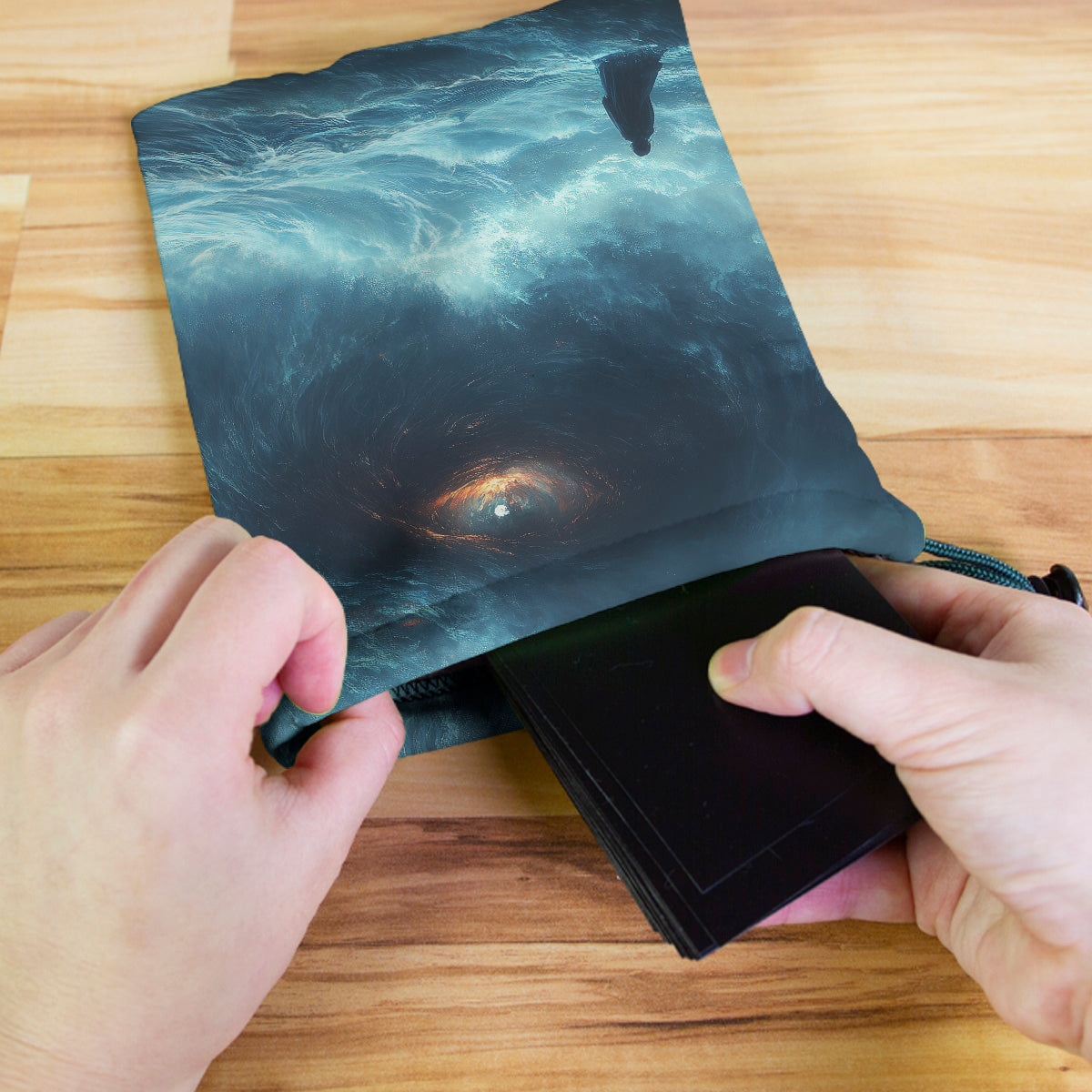 Always gaming on the go? Carry everything you need and more using our specially crafted dice bag. But this bag is designed to hold more than just dice. We make it so you can carry other essential accessories and gear with your dice, including deck boxes, life counters, extra sleeves, and pens. Quality is just as important as quantity, which is why our dice bags are crafted using premium material as well. Featuring a soft inner lining and microfiber on the inside and vibrant pre-designed artwork on the outside, our dice bag has an amazing look and feel to it!
