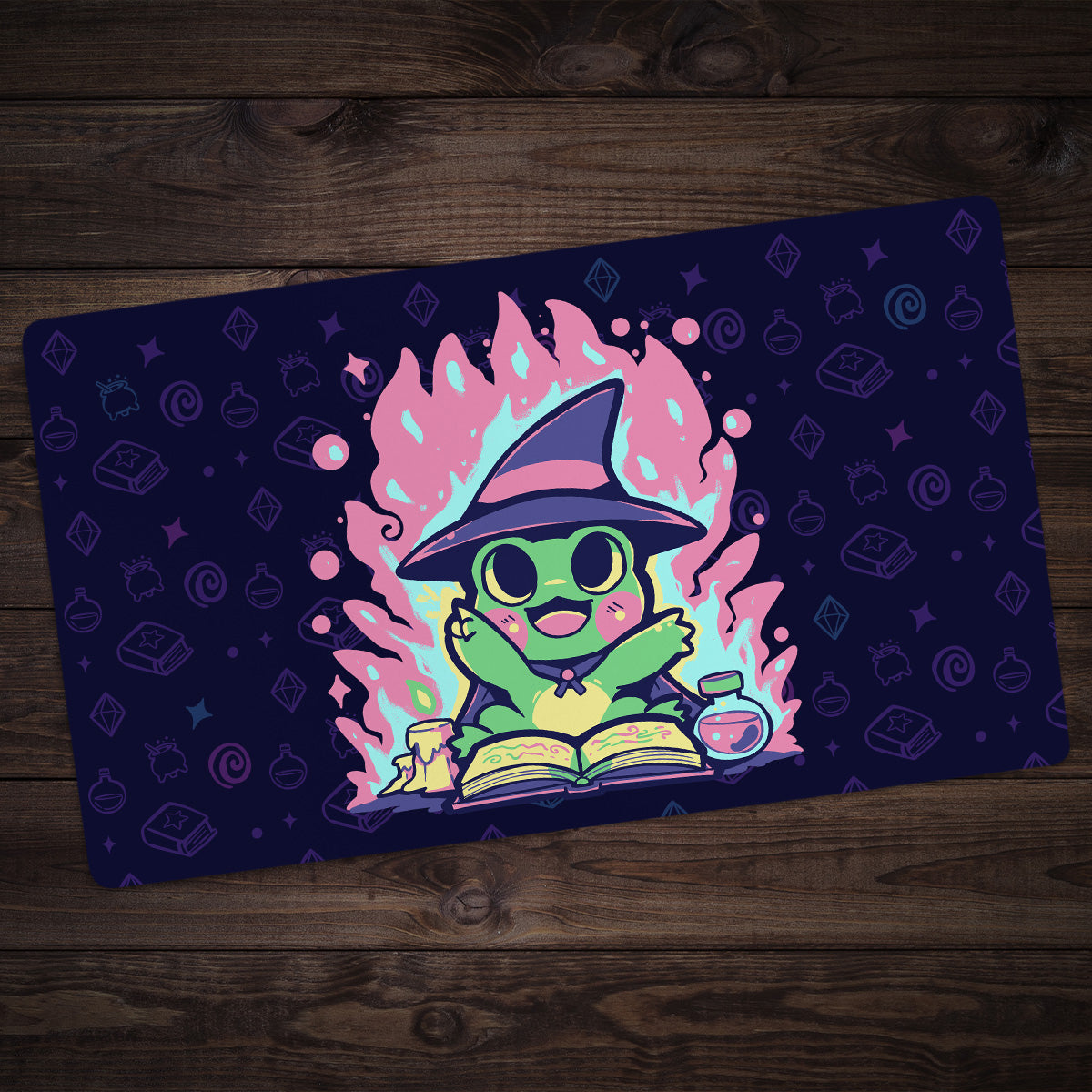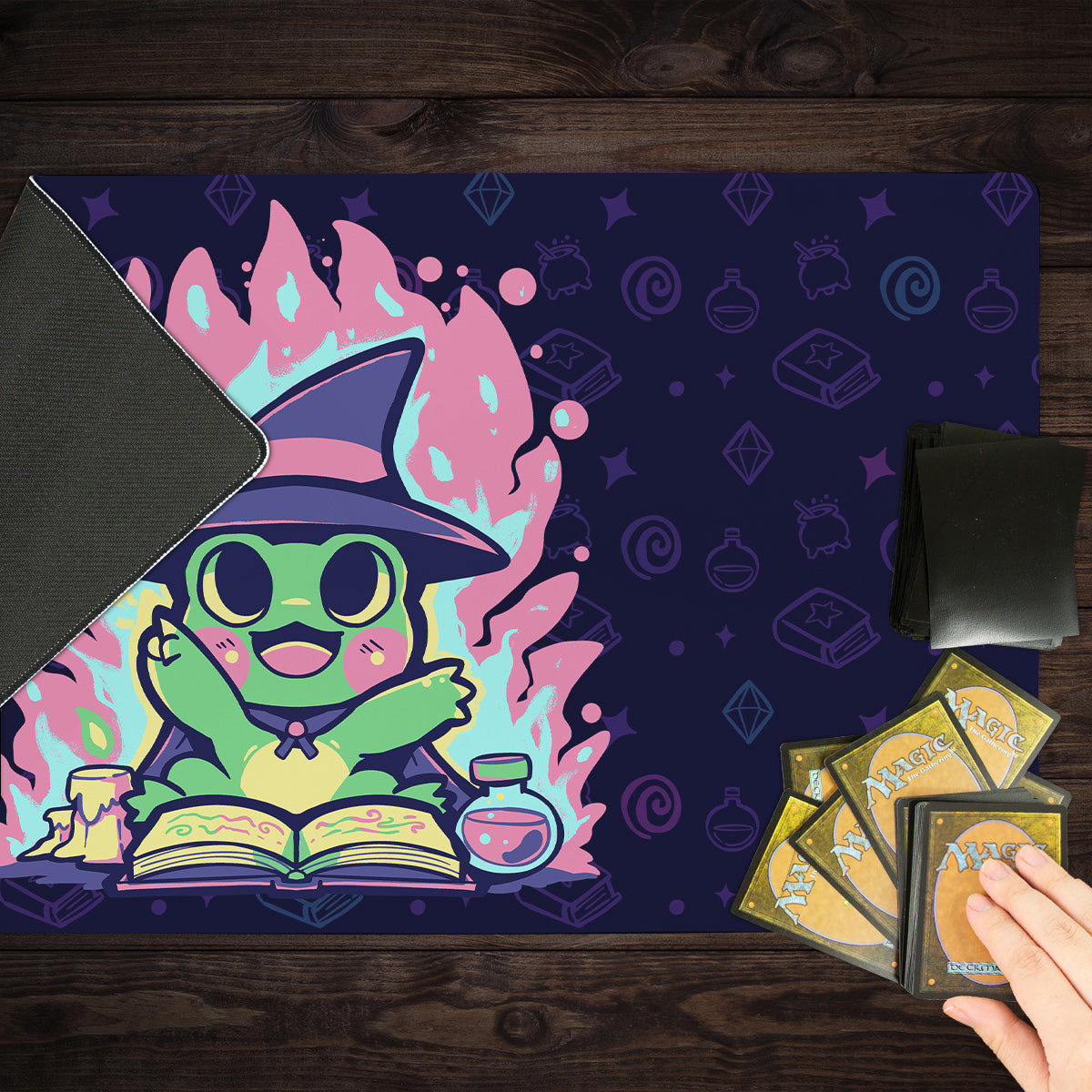 Standard Playmat measures at 24” x 14” inches and is 1/16 of an inch thick. It’s made with a smooth cloth top and strong rubber backing.