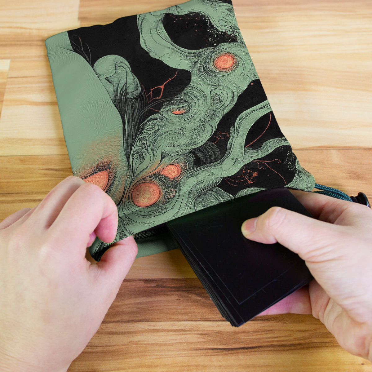 Always gaming on the go? Carry everything you need and more using our specially crafted dice bag. But this bag is designed to hold more than just dice. We make it so you can carry other essential accessories and gear with your dice, including deck boxes, life counters, extra sleeves, and pens. Quality is just as important as quantity, which is why our dice bags are crafted using premium material as well. Featuring a soft inner lining and microfiber on the inside and vibrant pre-designed artwork on the outside, our dice bag has an amazing look and feel to it!