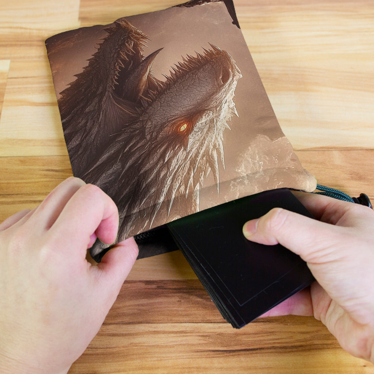 Always gaming on the go? Carry everything you need and more using our specially crafted dice bag. But this bag is designed to hold more than just dice. We make it so you can carry other essential accessories and gear with your dice, including deck boxes, life counters, extra sleeves, and pens. Quality is just as important as quantity, which is why our dice bags are crafted using premium material as well. Featuring a soft inner lining and microfiber on the inside and vibrant pre-designed artwork on the outside, our dice bag has an amazing look and feel to it!