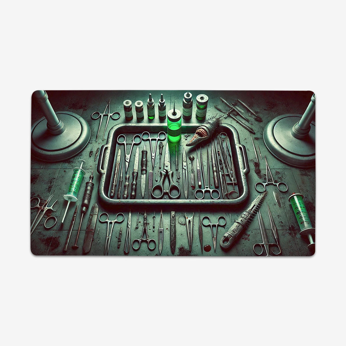 Standard Playmat measures at 24” x 14” inches and is 1/16 of an inch thick. It’s made with a smooth cloth top and strong rubber backing.