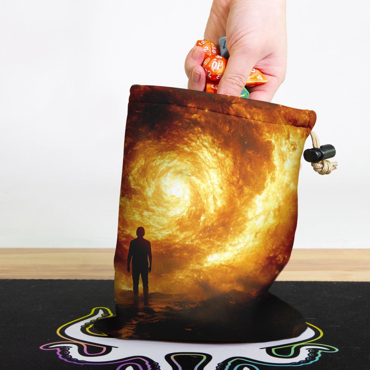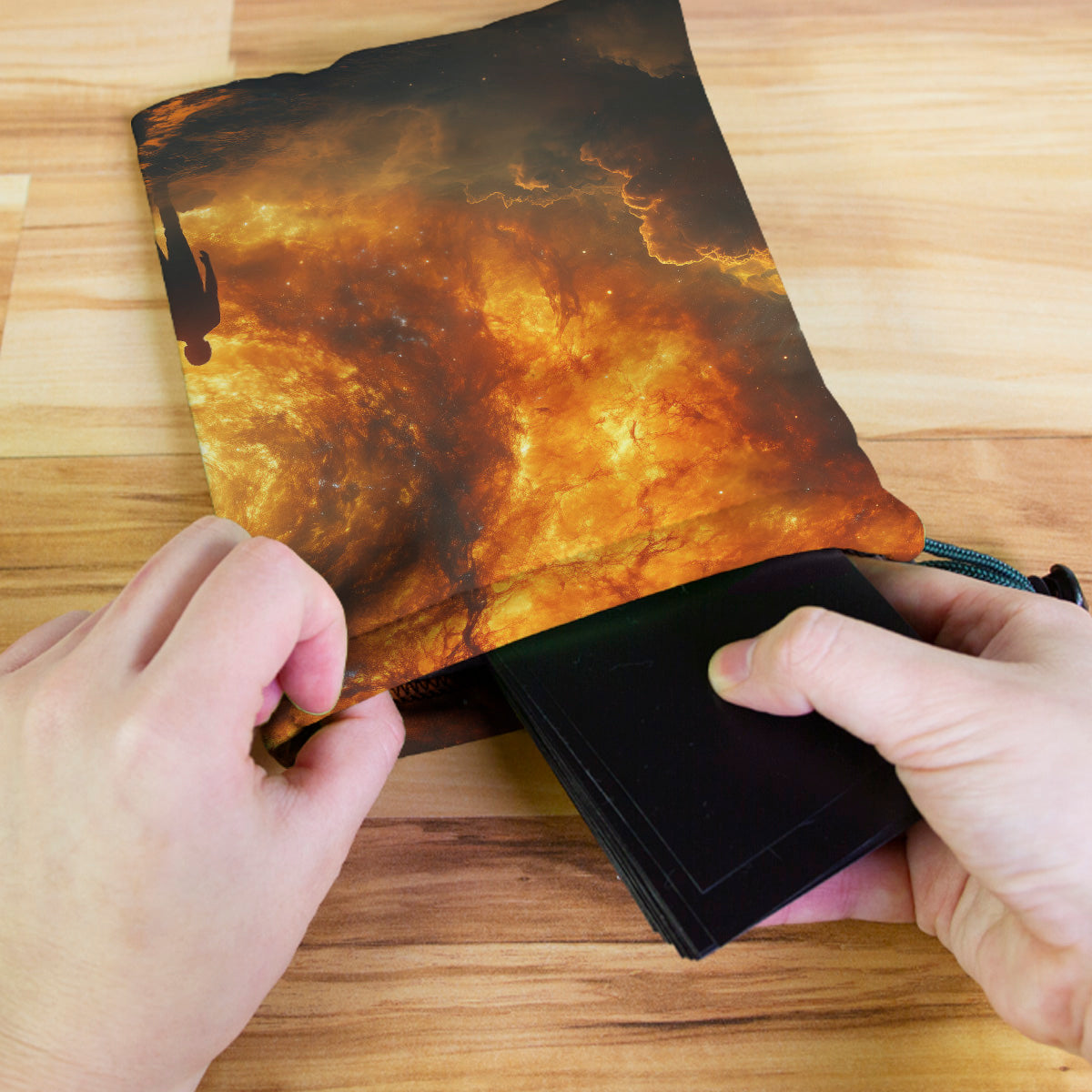 Always gaming on the go? Carry everything you need and more using our specially crafted dice bag. But this bag is designed to hold more than just dice. We make it so you can carry other essential accessories and gear with your dice, including deck boxes, life counters, extra sleeves, and pens. Quality is just as important as quantity, which is why our dice bags are crafted using premium material as well. Featuring a soft inner lining and microfiber on the inside and vibrant pre-designed artwork on the outside, our dice bag has an amazing look and feel to it!