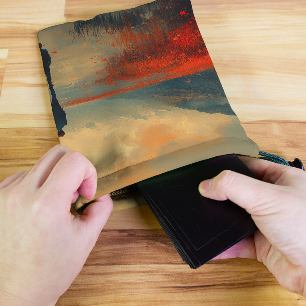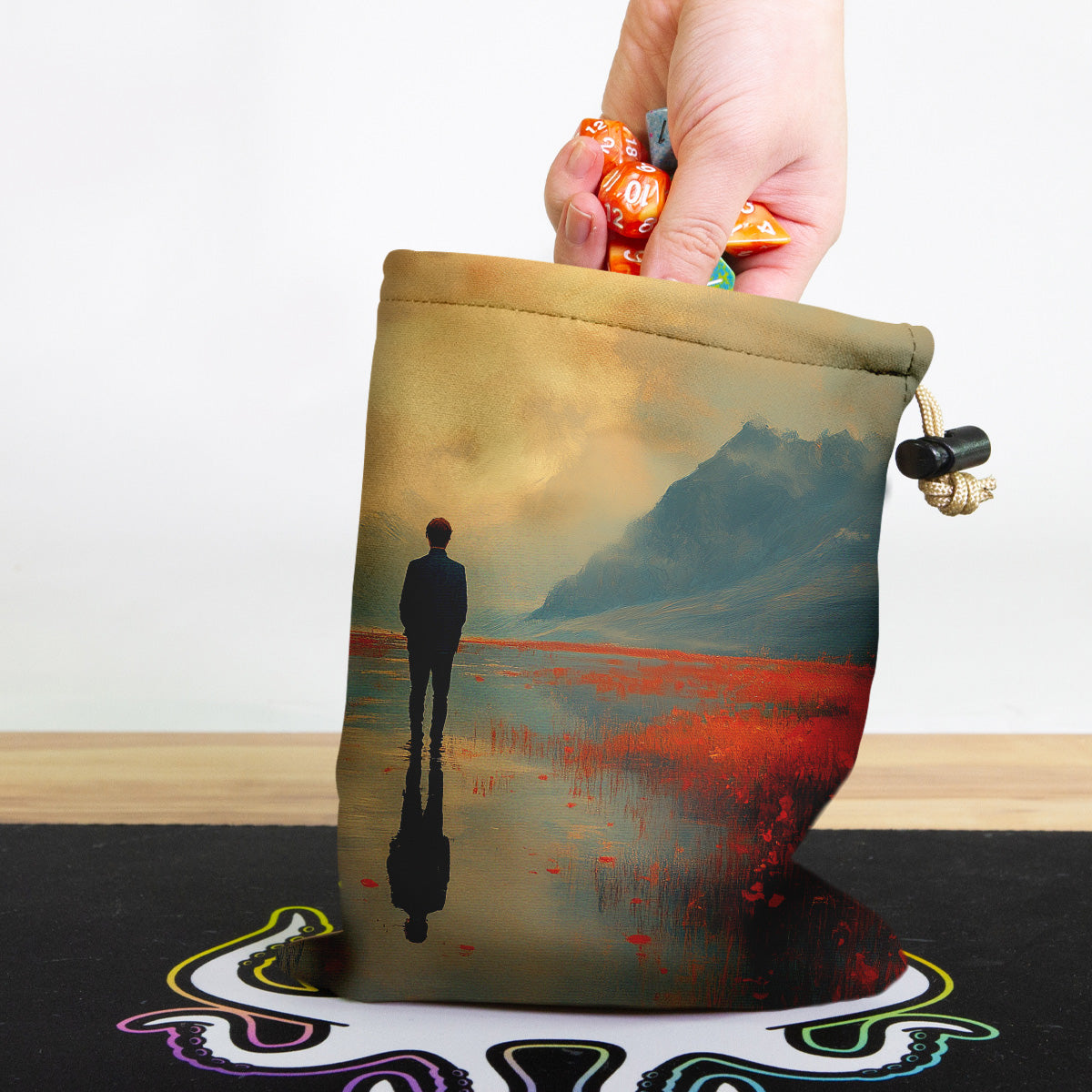 Scenes Of JoyAlways gaming on the go? Carry everything you need and more using our specially crafted dice bag. But this bag is designed to hold more than just dice. We make it so you can carry other essential accessories and gear with your dice, including deck boxes, life counters, extra sleeves, and pens. Quality is just as important as quantity, which is why our dice bags are crafted using premium material as well. Featuring a soft inner lining and microfiber on the inside and vibrant pre-designed artwork on the outside, our dice bag has an amazing look and feel to it!
