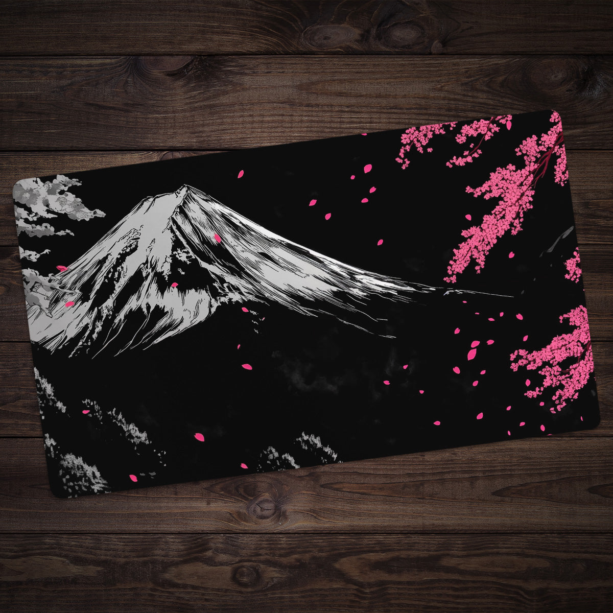 Standard Playmat measures at 24” x 14” inches and is 1/16 of an inch thick. It’s made with a smooth cloth top and strong rubber backing.