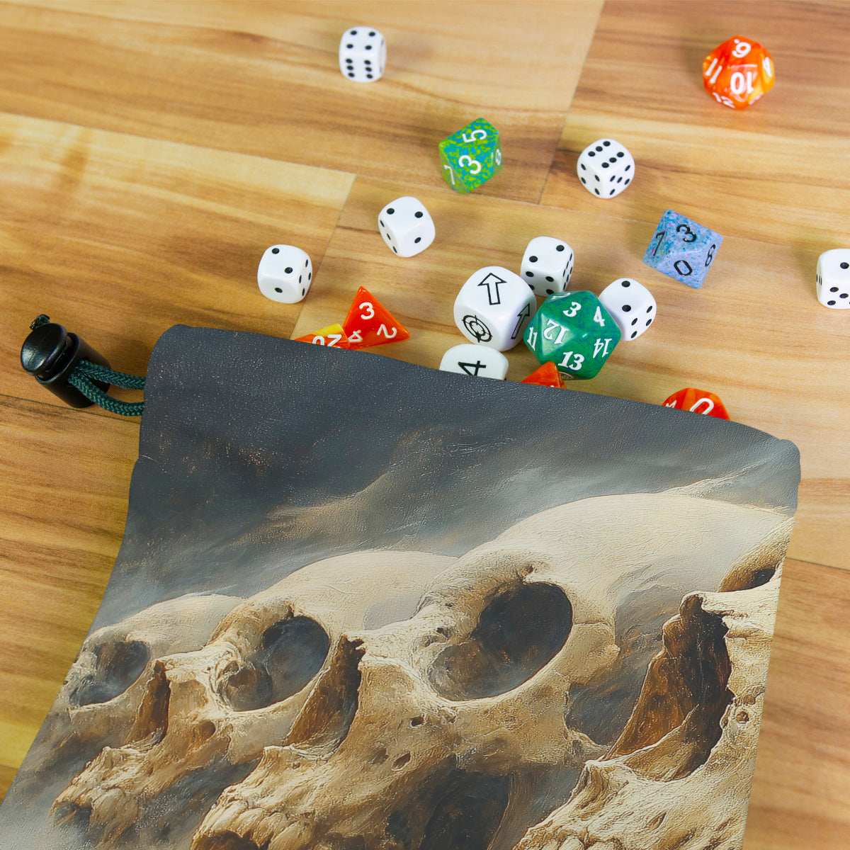 CVLPRITAlways gaming on the go? Carry everything you need and more using our specially crafted dice bag. But this bag is designed to hold more than just dice. We make it so you can carry other essential accessories and gear with your dice, including deck boxes, life counters, extra sleeves, and pens. Quality is just as important as quantity, which is why our dice bags are crafted using premium material as well. Featuring a soft inner lining and microfiber on the inside and vibrant pre-designed artwork on the outside, our dice bag has an amazing look and feel to it!