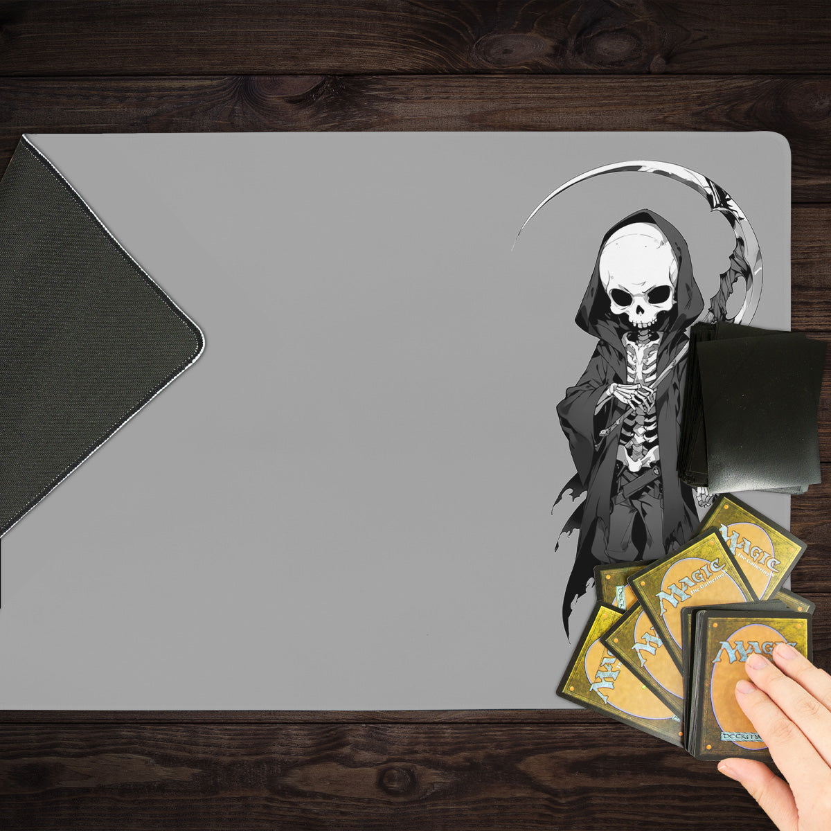Standard Playmat measures at 24” x 14” inches and is 1/16 of an inch thick. It’s made with a smooth cloth top and strong rubber backing.