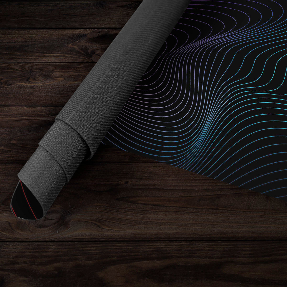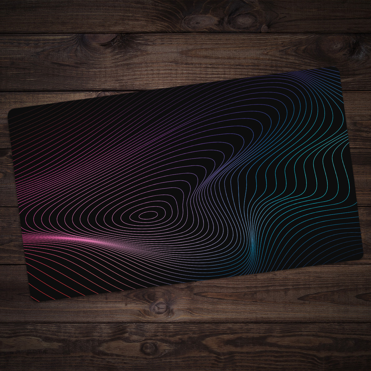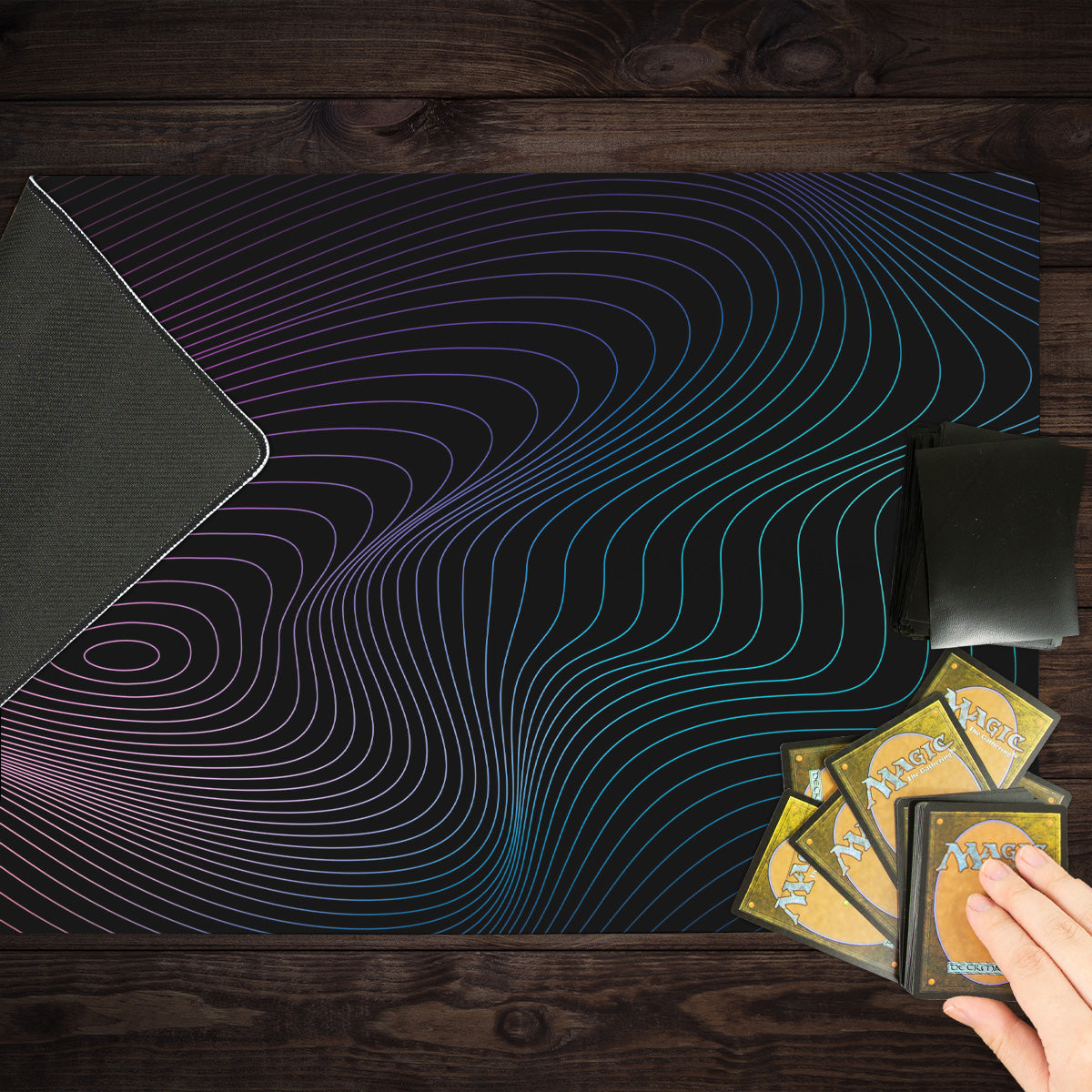 Standard Playmat measures at 24” x 14” inches and is 1/16 of an inch thick. It’s made with a smooth cloth top and strong rubber backing.