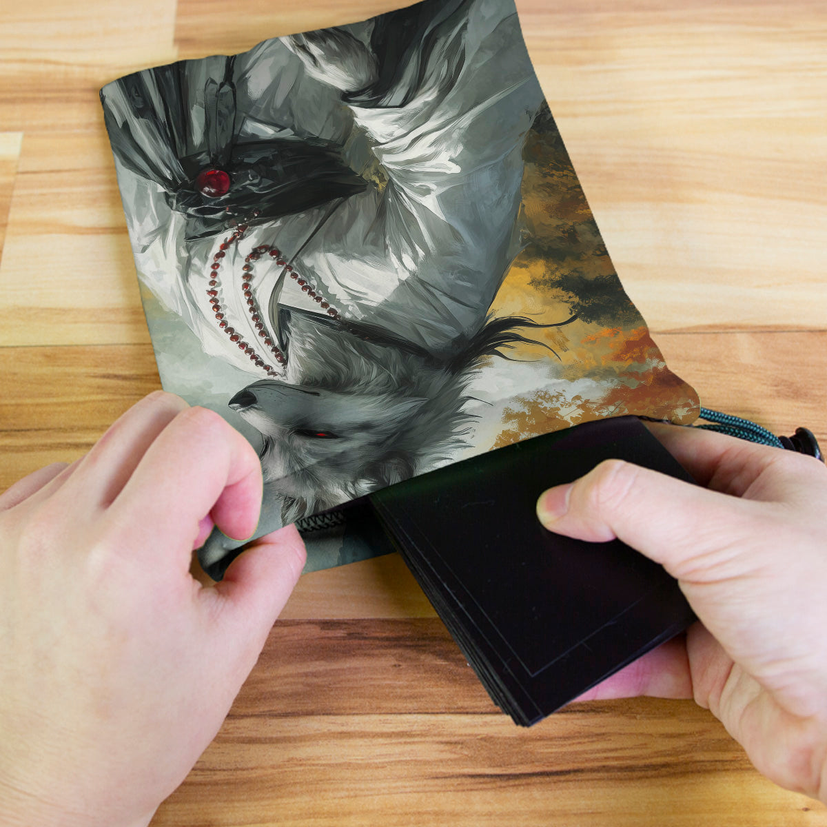 Carbon BeaverAlways gaming on the go? Carry everything you need and more using our specially crafted dice bag. But this bag is designed to hold more than just dice. We make it so you can carry other essential accessories and gear with your dice, including deck boxes, life counters, extra sleeves, and pens. Quality is just as important as quantity, which is why our dice bags are crafted using premium material as well. Featuring a soft inner lining and microfiber on the inside and vibrant pre-designed artwork on the outside, our dice bag has an amazing look and feel to it!