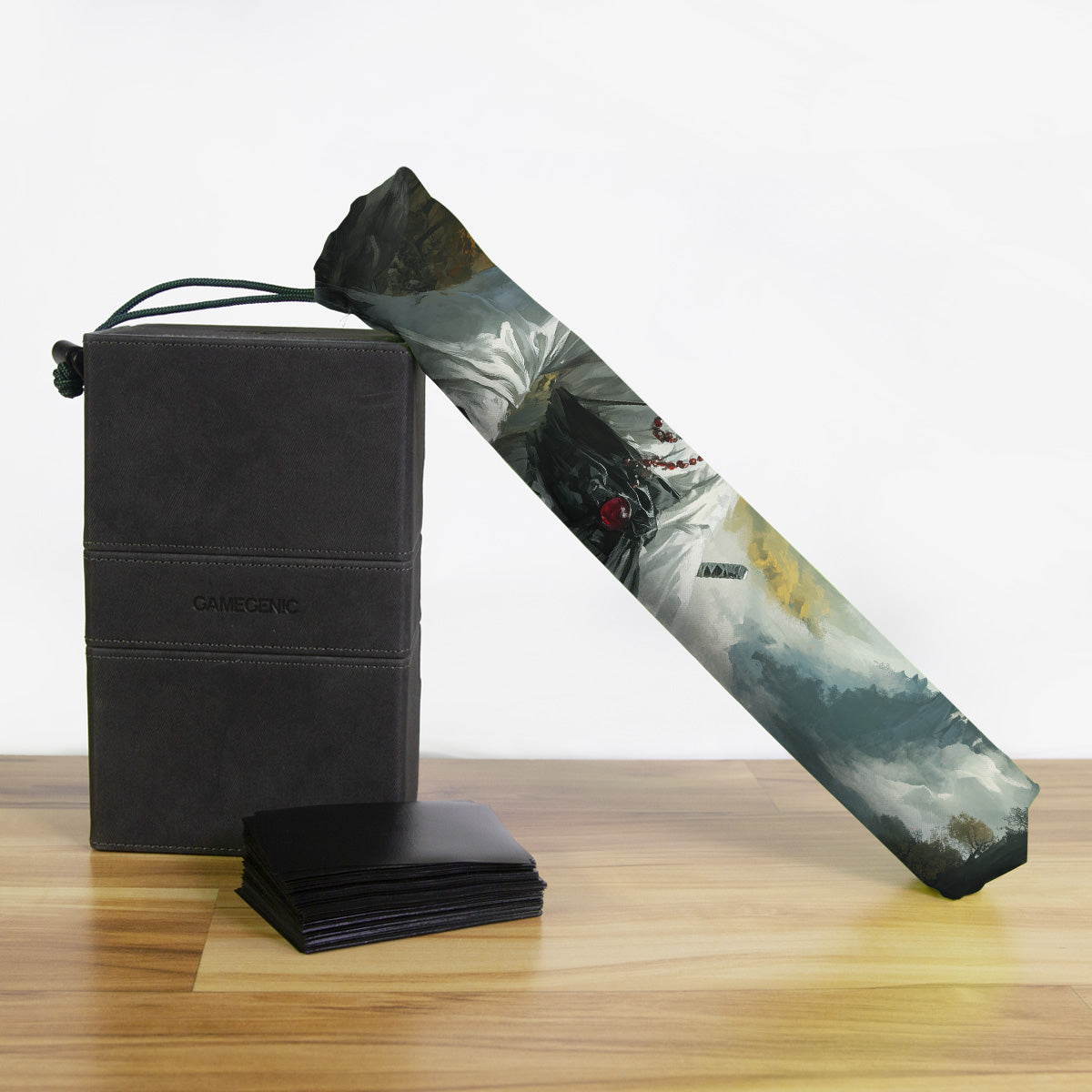 Keep your playmat in pristine condition wherever you go with one of our handcrafted playmat bags. This playmat bag is specifically designed to protect your playmat and can hold two standard sized mats at the same time (in case you need a backup or your friend forgets theirs). Each bag is made in-house and features a water-resistant coating along with a drawstring and carabiner clip for secure carrying. So you can take your game anywhere and in any weather.