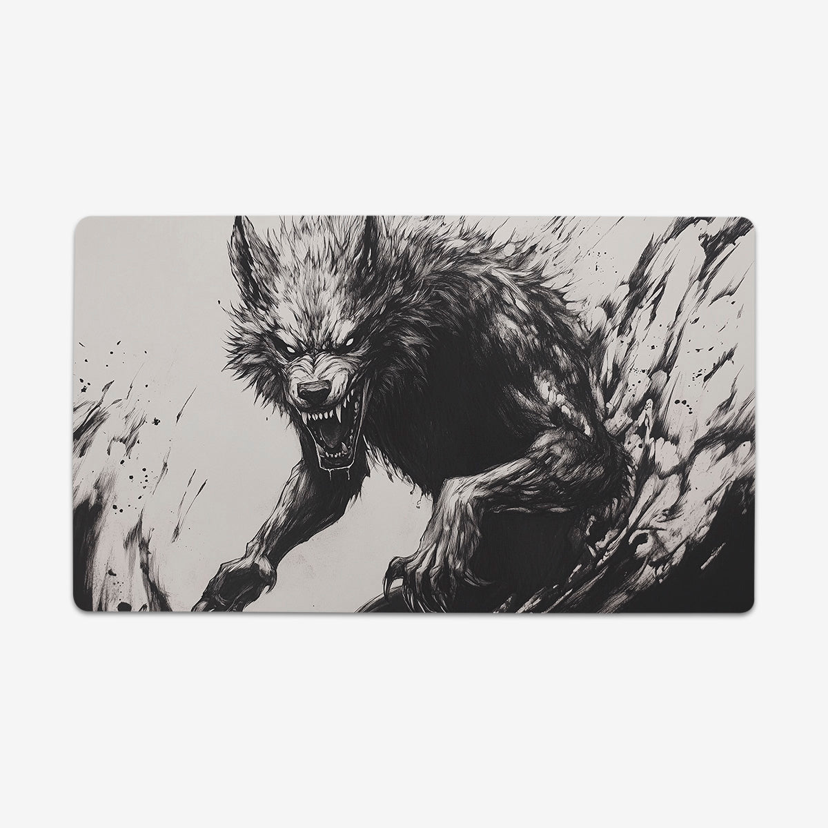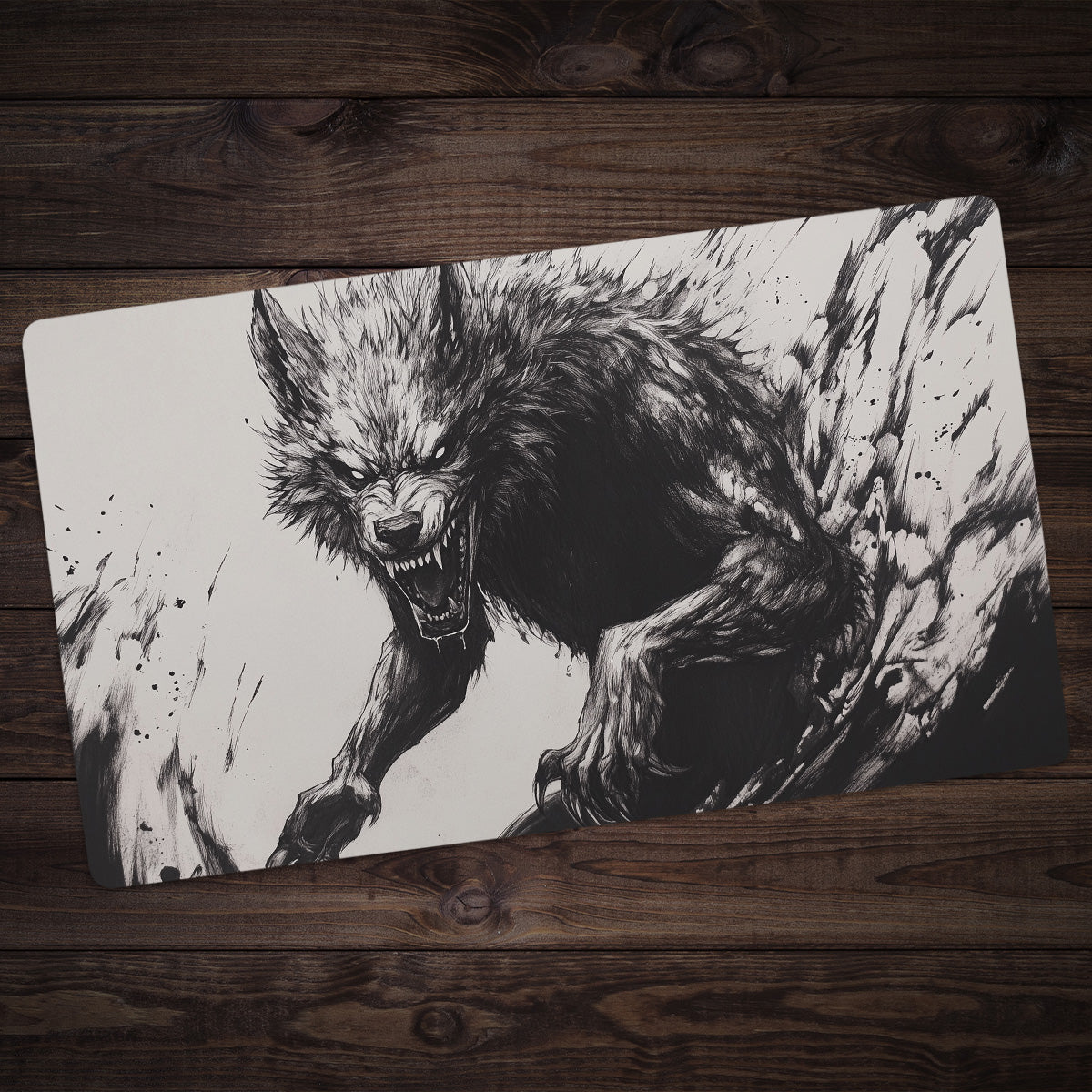 Standard Playmat measures at 24” x 14” inches and is 1/16 of an inch thick. It’s made with a smooth cloth top and strong rubber backing.