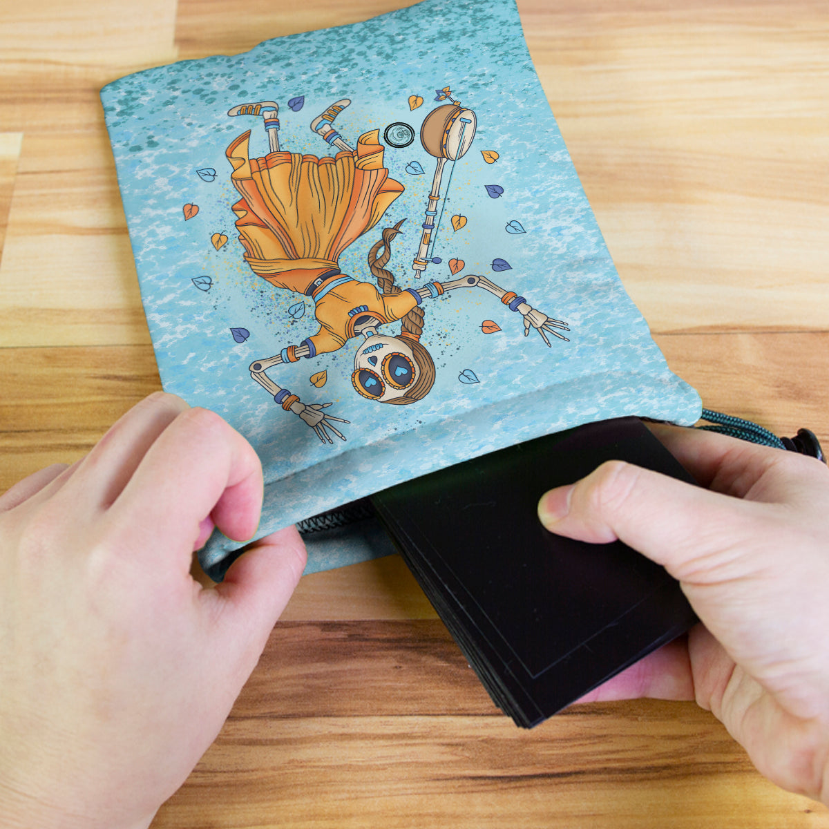 Always gaming on the go? Carry everything you need and more using our specially crafted dice bag. But this bag is designed to hold more than just dice. We make it so you can carry other essential accessories and gear with your dice, including deck boxes, life counters, extra sleeves, and pens. Quality is just as important as quantity, which is why our dice bags are crafted using premium material as well. Featuring a soft inner lining and microfiber on the inside and vibrant pre-designed artwork on the outside, our dice bag has an amazing look and feel to it!
