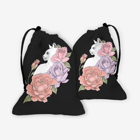 White Cat And Roses Dice Bag