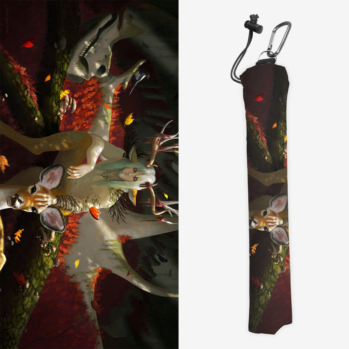 Playmat Bags are specifically designed to hold your mats in style. They are large enough to carry up to two mats. They are coated to be water resistant and include a strap with carabiner for carrying on your backpack. Our bags are hand made in house, and to order. A design that is vertical or patterned would be best for this type of product.
