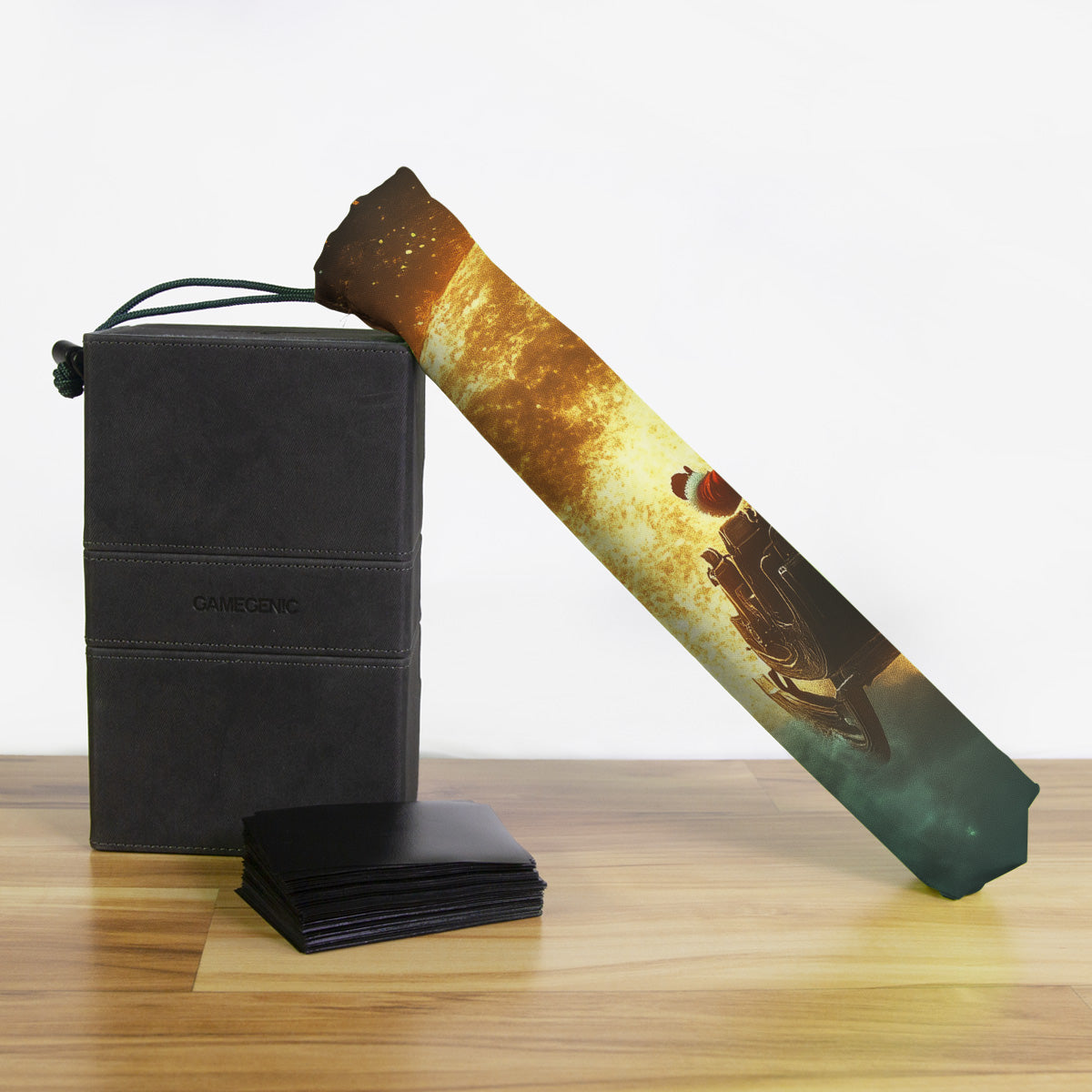 Keep your playmat in pristine condition wherever you go with one of our handcrafted playmat bags. This playmat bag is specifically designed to protect your playmat and can hold two standard sized mats at the same time (in case you need a backup or your friend forgets theirs). Each bag is made in-house and features a water-resistant coating along with a drawstring and carabiner clip for secure carrying. So you can take your game anywhere and in any weather.