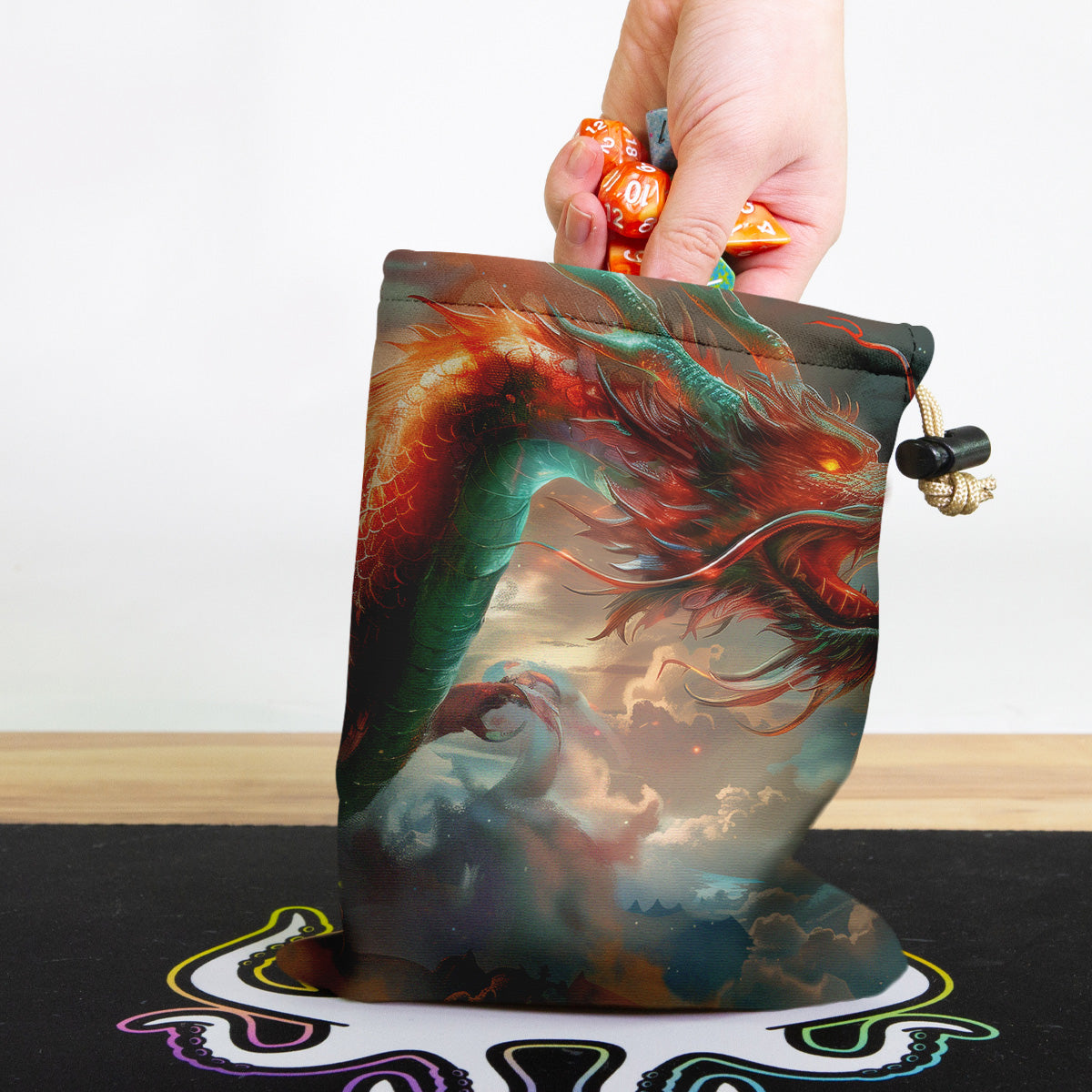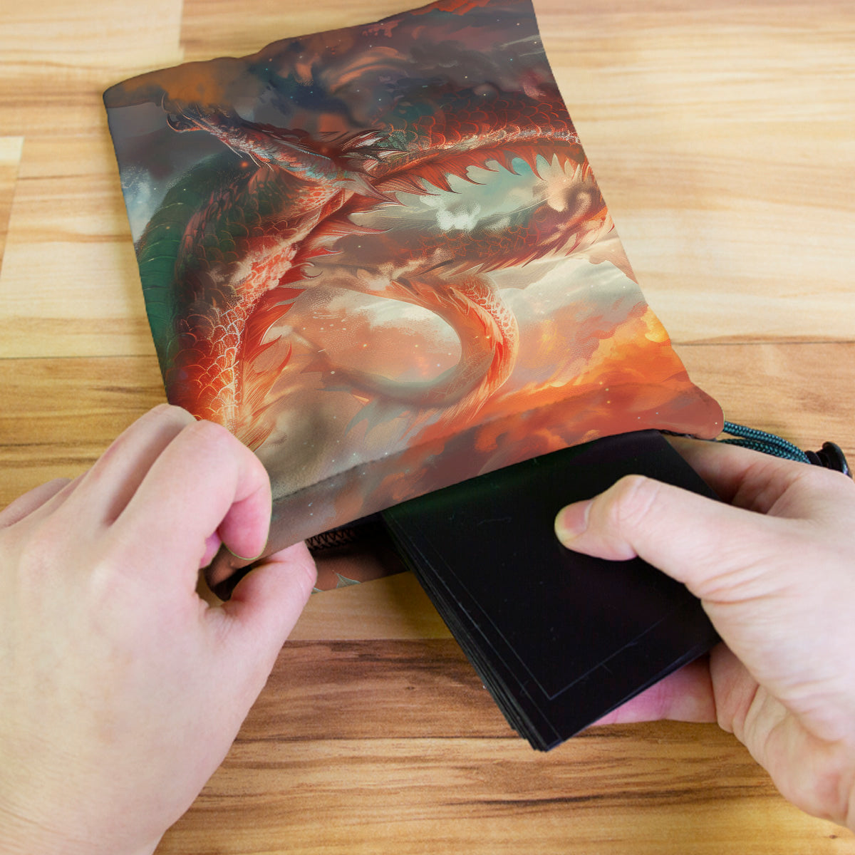 Always gaming on the go? Carry everything you need and more using our specially crafted dice bag. But this bag is designed to hold more than just dice. We make it so you can carry other essential accessories and gear with your dice, including deck boxes, life counters, extra sleeves, and pens. Quality is just as important as quantity, which is why our dice bags are crafted using premium material as well. Featuring a soft inner lining and microfiber on the inside and vibrant pre-designed artwork on the outside, our dice bag has an amazing look and feel to it!