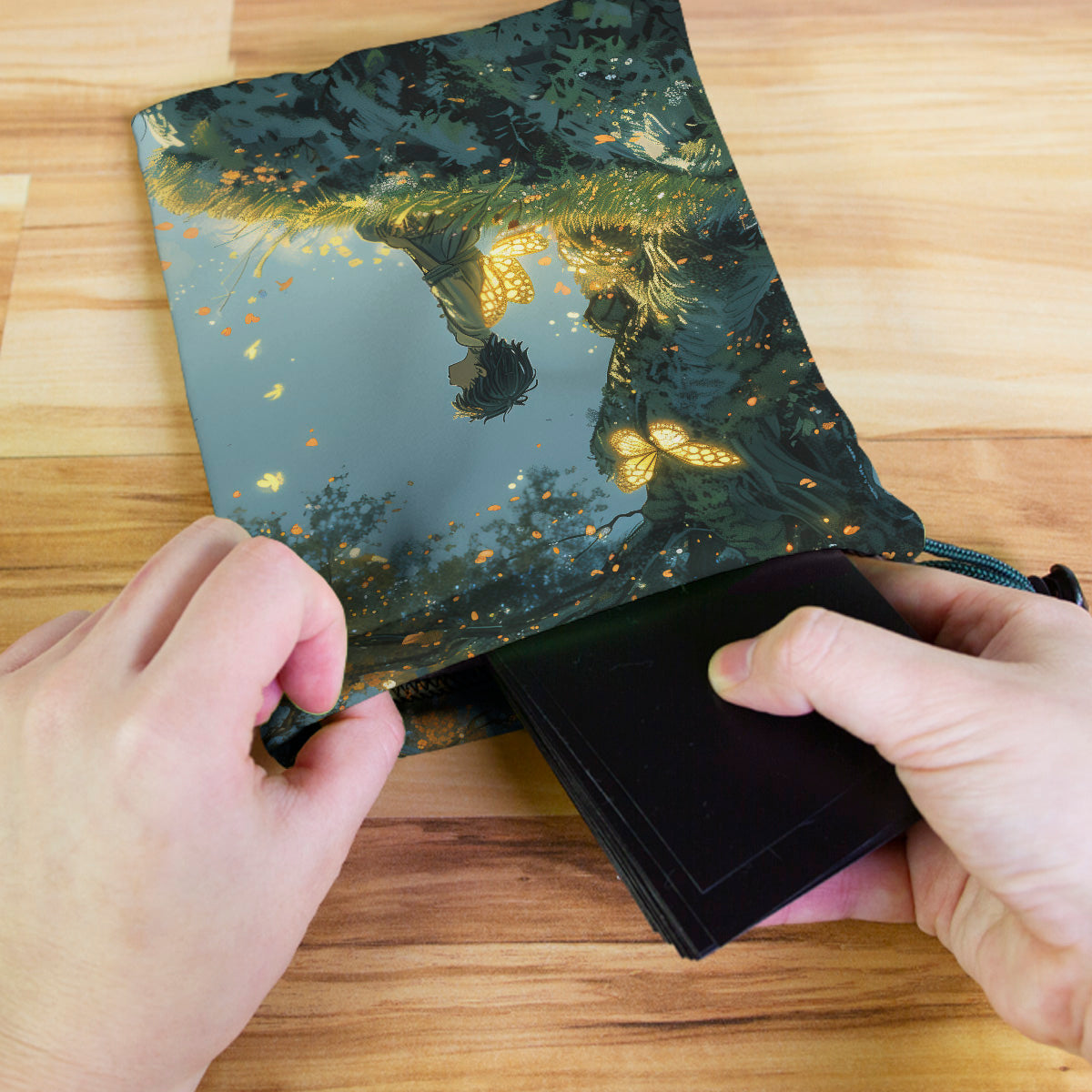 Always gaming on the go? Carry everything you need and more using our specially crafted dice bag. But this bag is designed to hold more than just dice. We make it so you can carry other essential accessories and gear with your dice, including deck boxes, life counters, extra sleeves, and pens. Quality is just as important as quantity, which is why our dice bags are crafted using premium material as well. Featuring a soft inner lining and microfiber on the inside and vibrant pre-designed artwork on the outside, our dice bag has an amazing look and feel to it!