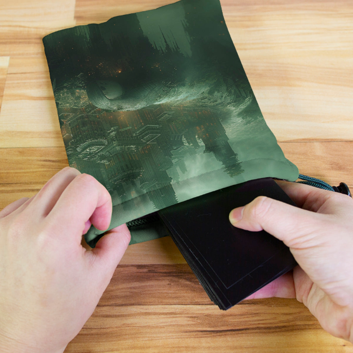 Always gaming on the go? Carry everything you need and more using our specially crafted dice bag. But this bag is designed to hold more than just dice. We make it so you can carry other essential accessories and gear with your dice, including deck boxes, life counters, extra sleeves, and pens. Quality is just as important as quantity, which is why our dice bags are crafted using premium material as well. Featuring a soft inner lining and microfiber on the inside and vibrant pre-designed artwork on the outside, our dice bag has an amazing look and feel to it!