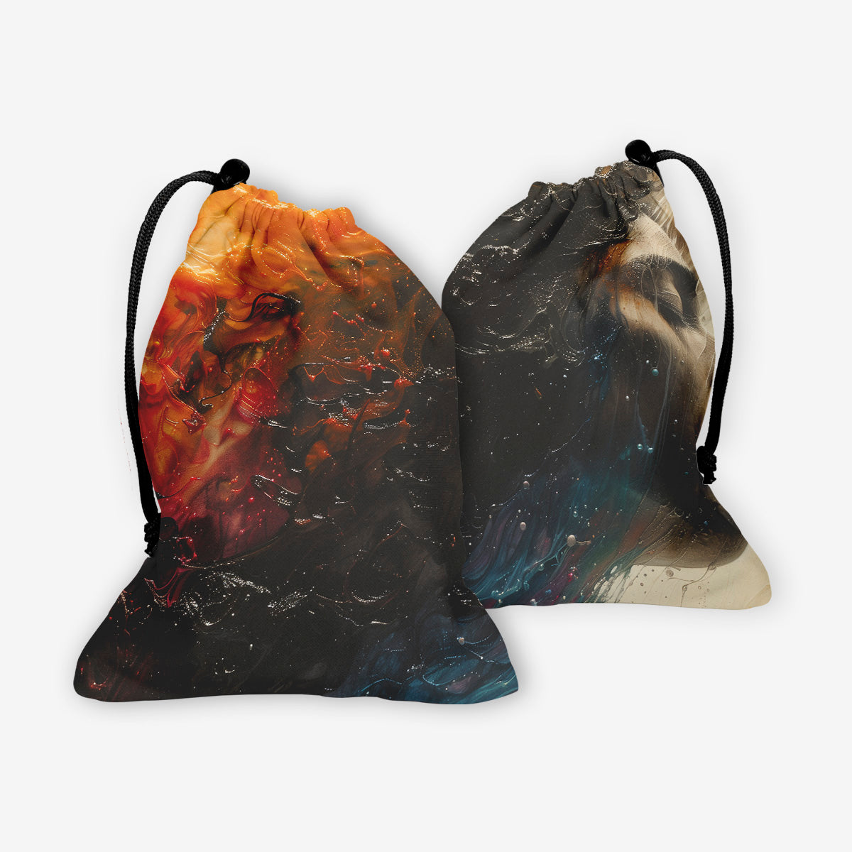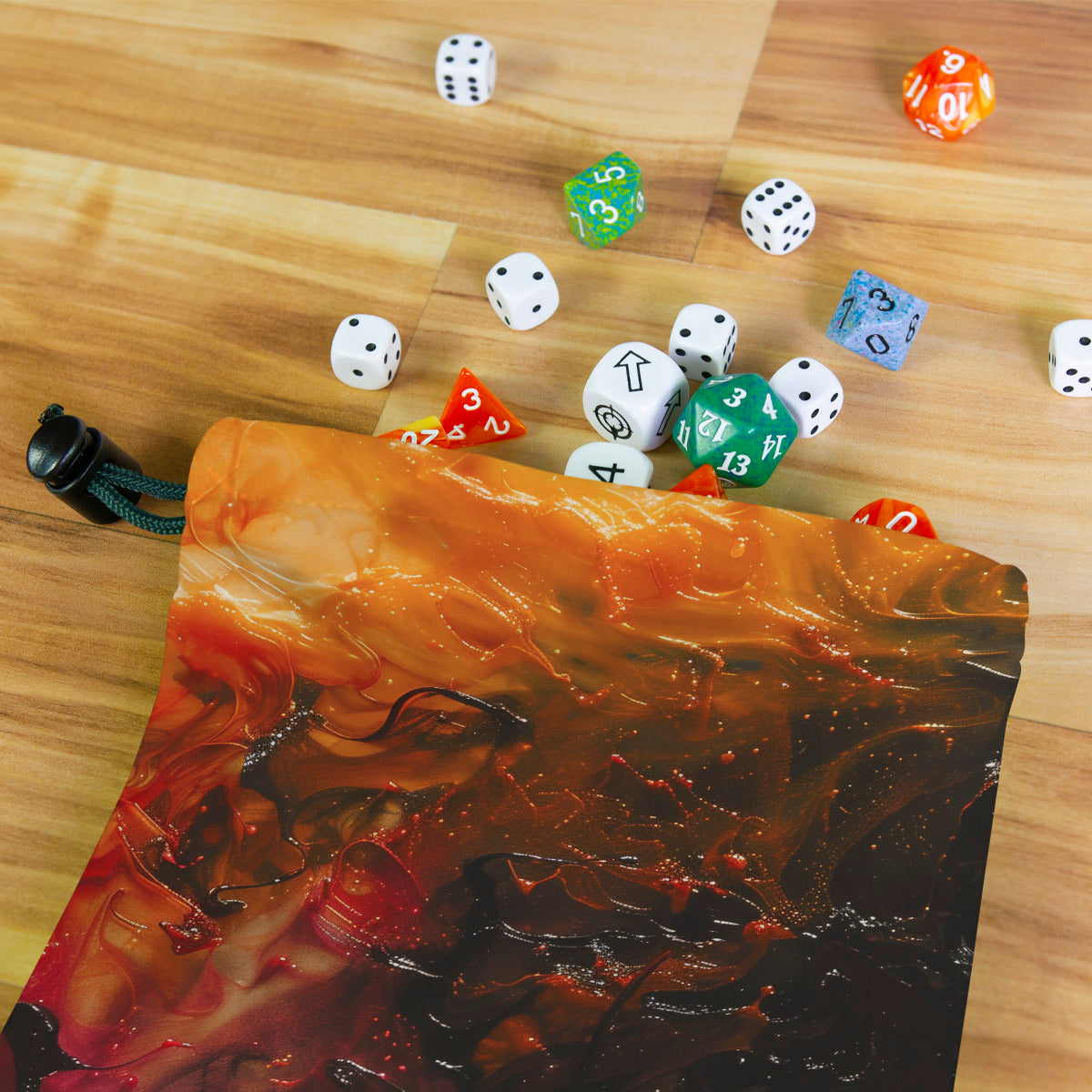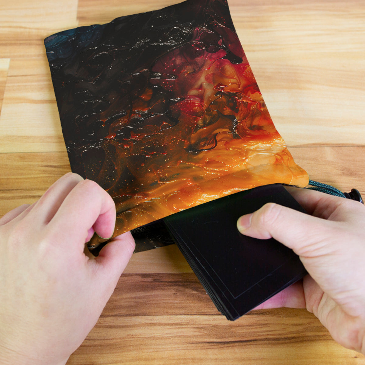 Always gaming on the go? Carry everything you need and more using our specially crafted dice bag. But this bag is designed to hold more than just dice. We make it so you can carry other essential accessories and gear with your dice, including deck boxes, life counters, extra sleeves, and pens. Quality is just as important as quantity, which is why our dice bags are crafted using premium material as well. Featuring a soft inner lining and microfiber on the inside and vibrant pre-designed artwork on the outside, our dice bag has an amazing look and feel to it!