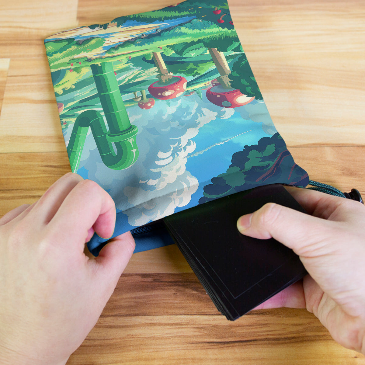 Always gaming on the go? Carry everything you need and more using our specially crafted dice bag. But this bag is designed to hold more than just dice. We make it so you can carry other essential accessories and gear with your dice, including deck boxes, life counters, extra sleeves, and pens. Quality is just as important as quantity, which is why our dice bags are crafted using premium material as well. Featuring a soft inner lining and microfiber on the inside and vibrant pre-designed artwork on the outside, our dice bag has an amazing look and feel to it!