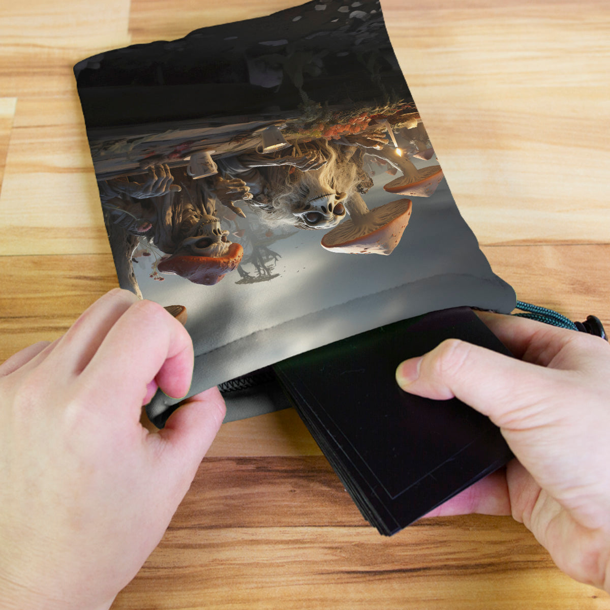 KnerdedAlways gaming on the go? Carry everything you need and more using our specially crafted dice bag. But this bag is designed to hold more than just dice. We make it so you can carry other essential accessories and gear with your dice, including deck boxes, life counters, extra sleeves, and pens. Quality is just as important as quantity, which is why our dice bags are crafted using premium material as well. Featuring a soft inner lining and microfiber on the inside and vibrant pre-designed artwork on the outside, our dice bag has an amazing look and feel to it!