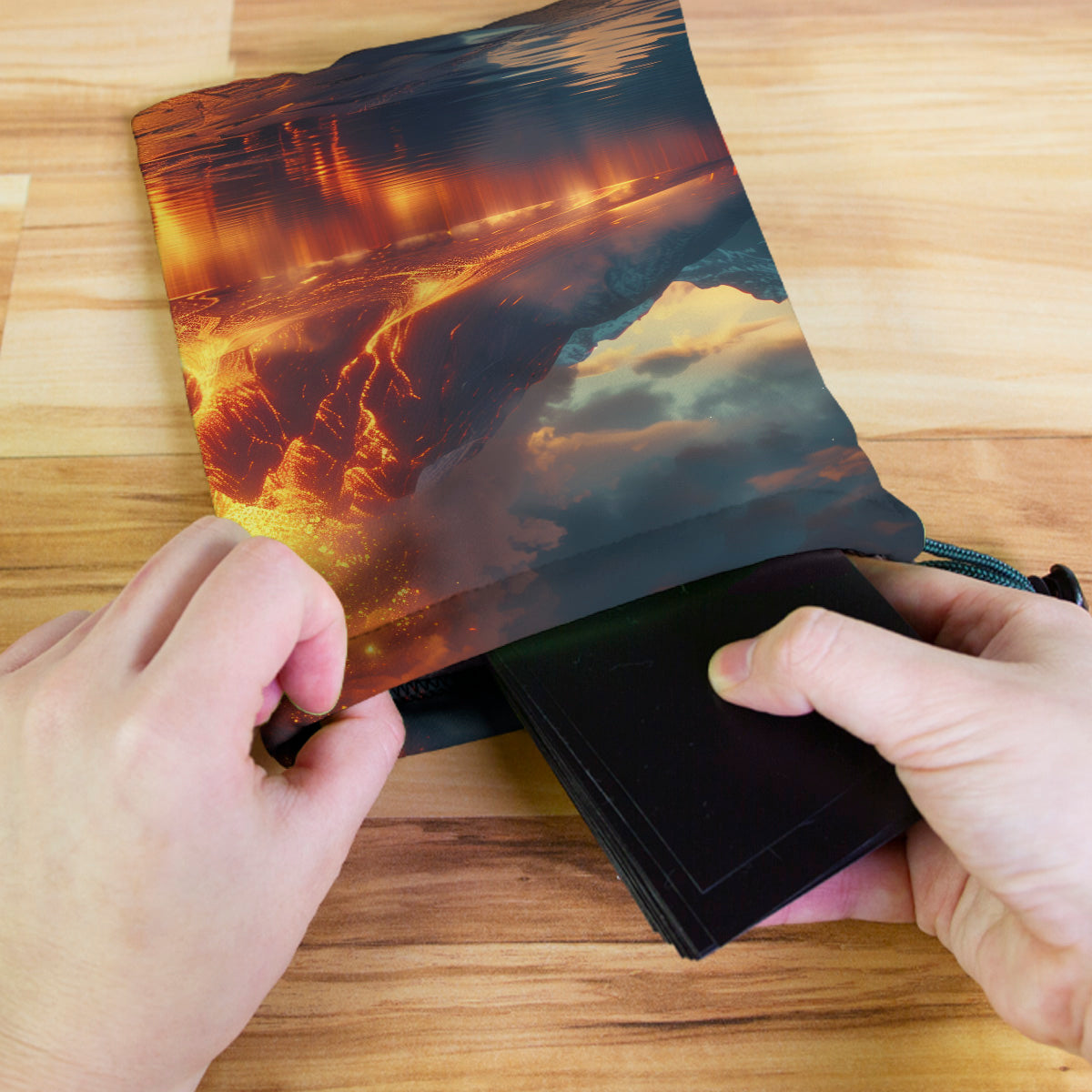 Always gaming on the go? Carry everything you need and more using our specially crafted dice bag. But this bag is designed to hold more than just dice. We make it so you can carry other essential accessories and gear with your dice, including deck boxes, life counters, extra sleeves, and pens. Quality is just as important as quantity, which is why our dice bags are crafted using premium material as well. Featuring a soft inner lining and microfiber on the inside and vibrant pre-designed artwork on the outside, our dice bag has an amazing look and feel to it!